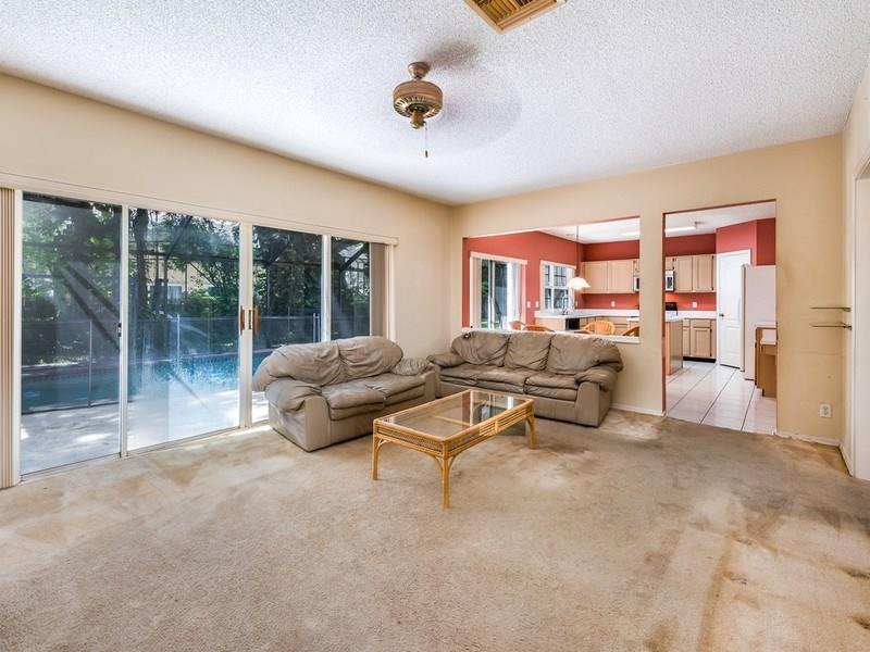 STUNNING 5Bed-3bath 2-story home located in Woodside Estates. Home features spacious floor-plan with lots of natural light, vaulted ceiling, carpeted floor, LARGE kitchen, bar & pantry. Spacious bedrooms, HUGE walk-in master closet space. Master bathroom upstairs has its separate shower & roman tub. Living room has view of the pool outside. Screened patio, attached 2-car garage and fenced. New roof that is only 1 year old!! Centrally located - close to major roads, shopping and dining. MUST SEE!