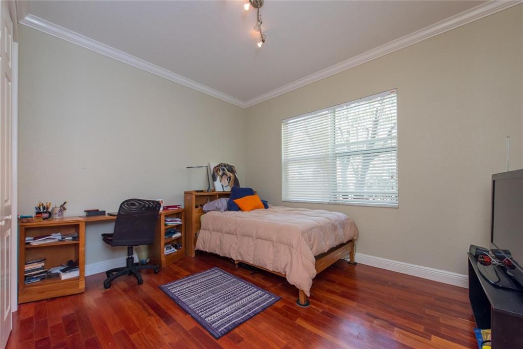 Offering the best opportunity in guard gated, desirable Parkland Isles, this impeccably maintained home is picture perfect!! Outstanding features incl: 16" stone-look tile, diagonally laid thru-out main living area; Brazilian cherry hardwood flrs in bedrms; three sets of French doors to patio; crown molding thru-out home; upgraded kitchen w/custom cabinets, stainless steel appliances & NEW, GORGEOUS, granite countertops & backsplash; coffered ceiling in spacious DR; & elegant master suite!! Fenced yard!