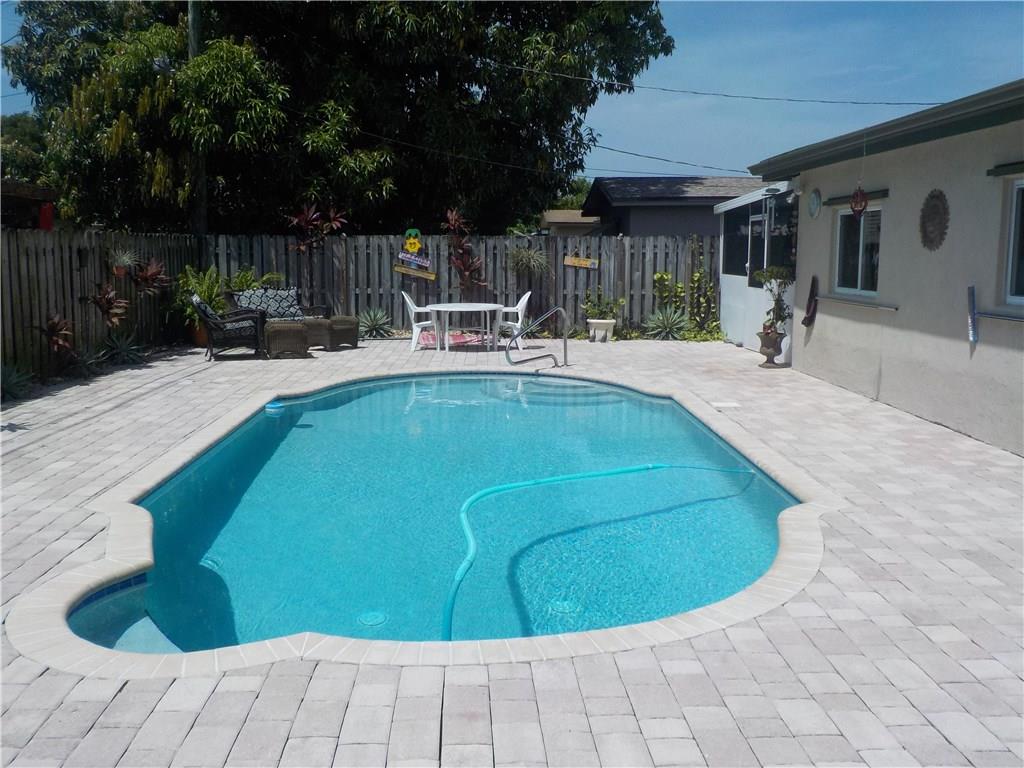 Beautiful 3 bedroom 2 bath home. Updated Kitchen features granite countertop, new cabinets and gas range. Bonus area off kitchen makes a great office or craft room. Nice screened patio leads to sparkling pool with zero mait. yard completely brick pavered. Great space for entertaining. Both bathrooms remodeled. Master bedroom has his and her closets with reclaimed wood doors leading towards a custom remodeled bathroom. Attention to detail and pride of ownership throughout this wonderful property.