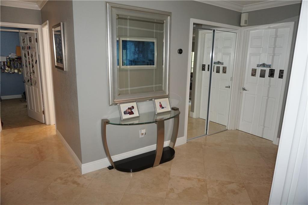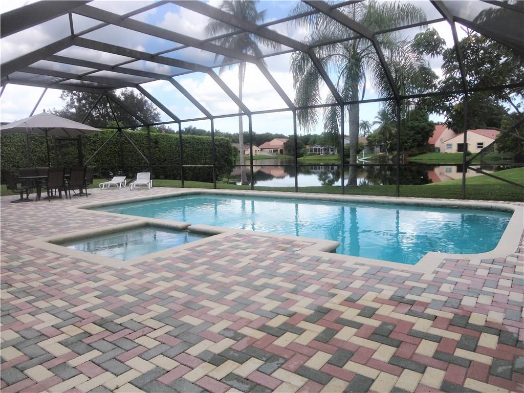 Elegant and remodeled Waterfront pool home. This home was originally a 4 bedroom but previous owner converted it to a 3 bedroom with Huge master and Custom Closets. Upgrades include:New Travertine Tile, Black Bamboo wood floors,Gorgeous kitchen with White shaker Cabinets and Blue pearl granite, Knock down textured walls, Bonus room/Office, new lighting, Crown molding & base boards. Salt chlorination system for pool,all new doors & hardware, built-in closets,central Vac, Prewired for full house generator