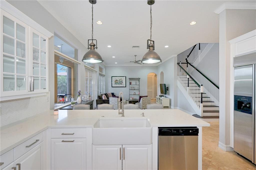 MOTIVATED SELLER! BRING ALL OFFERS! A beautiful double door entry welcomes you into this recently renovated home. This house features a custom white open kitchen, 5 spacious bedrooms/office, 3 wet bars,crown-molding, marble/wood floors, 3 car garage, and beautiful outdoor area with screened in lanai and salt-water pool! The lake helps create a gorgeous view throughout the entire home, especially when sitting out on your master bedroom balcony. This home has plenty of space both inside and out!