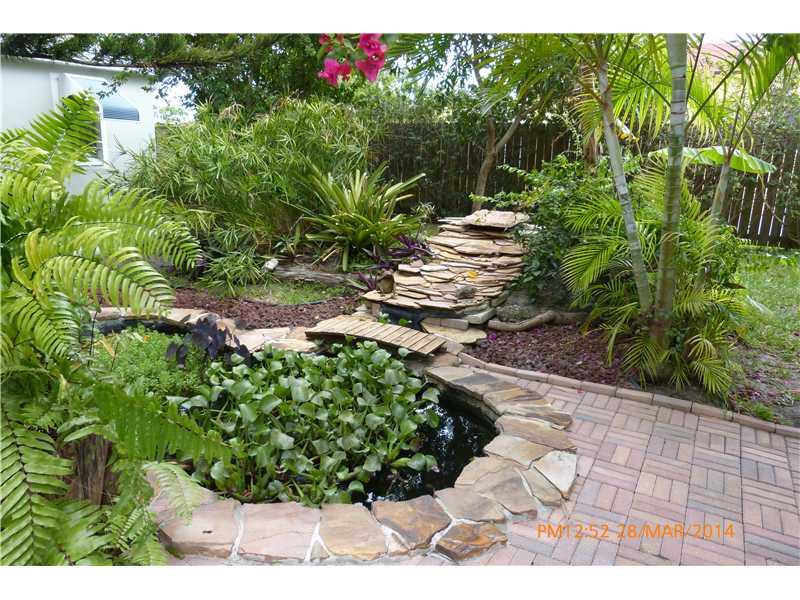 Quaint little house nestled in a tropical oasis in a quiet,dead-end street.The home is comprised of a bedroom,living room,kitchen and one bathroom.The home sits on a private,completely fenced-in 5042 square feet lot with a spacious driveway for 3 cars and patio,and is surrounded by mature,tropical vegetation,including banana,mango and avocado trees,as well as a fish pond and waterfall.The exterior of the house was painted in 2012.New kitchen,granite counter ,new ss appliances.Will not last call now.