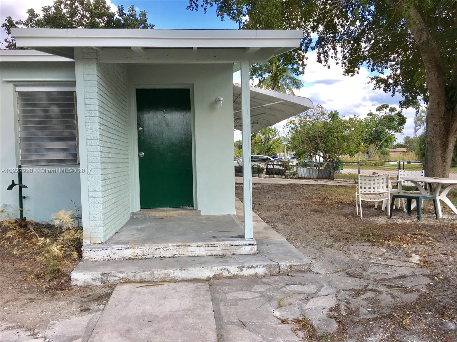 Clean 2 bed/1 bath, large corner lot. New kitchen and bathroom. Interior and exterior newly painted. Across the street from Davie Veterans Park. No central a/c.