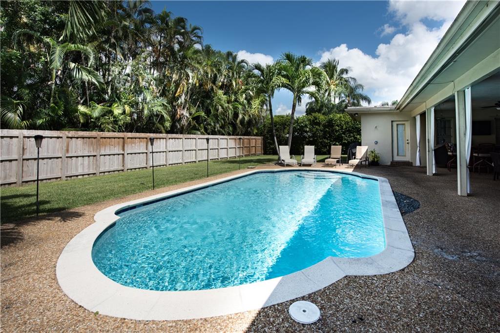 Totally remodeled 4/2.5 pool home w/ bonus room! Can be office or den. Beautiful updated granite kitchen & baths. Circular driveway & two car garage. Double door front entry w/ large interior foyer. Brand new A/C. Spacious covered patio overlooking the pool area w/ kitchen pass-thru & 2 cabana baths. Fenced yard. Outdoor shower. Separate laundry room.Walk-in closet in hallway for additional storage. 16x16 diagonal tile throughout. Crown molding. Close to schools, shops & restaurants. Don't miss this!