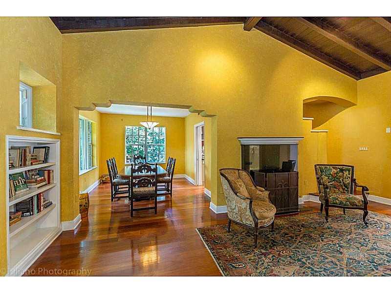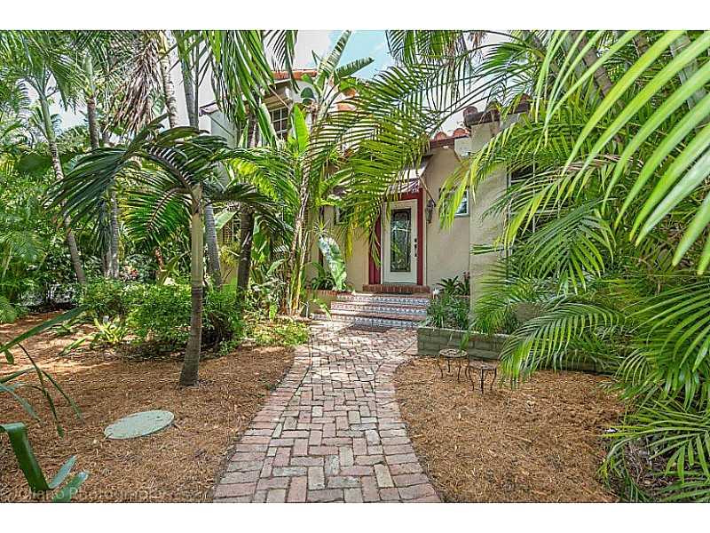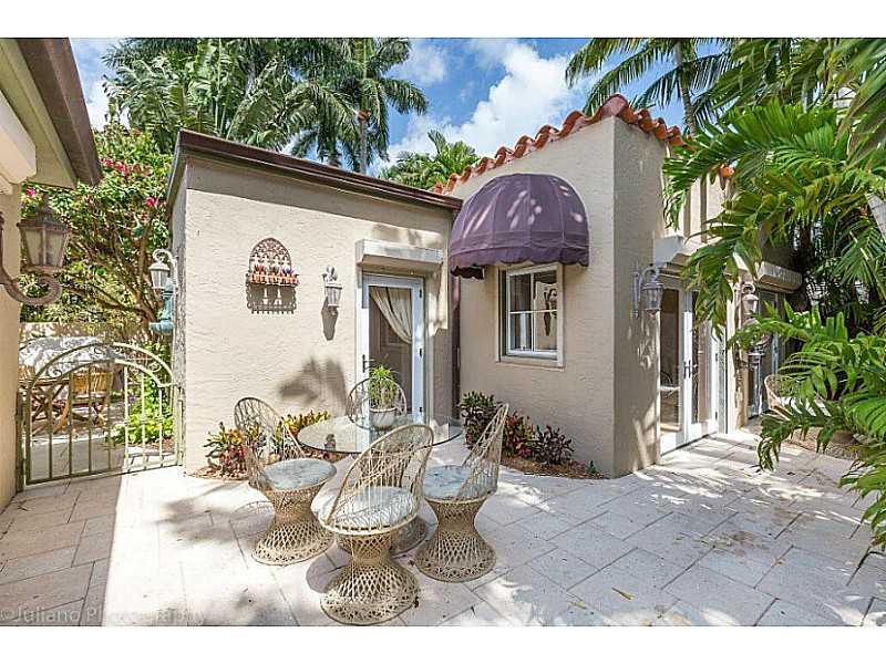 1930's gated 2 story Mediterranean Villa w guest house offers 4 bedrooms, optional den/5th bedroom 3 full baths, updated finishes. Vaulted beamed ceilings, cherry wide plank wood floors, fireplace, chefs kitchen w SS appliances, granite countertops, custo m cabinetry, w eat-in area. Fam room has granite flooring overlooking heated pool. All this in a secluded lush tropical garden setting reminiscent of Key West and Coconut Grove. Backup generator, irrigation system, code-compliant hurricane shutters.