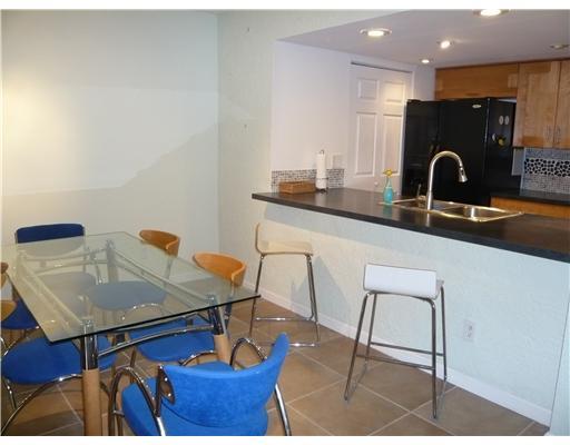 This townhome has been remodeled with style and taste in 2011. It is in move-in condition. The appliances are new. The floors are contemporary beige tile in the living areas, and wood in the bedrooms. Hip lighting fixtures and stone back splashes in the kitchen and bath are nice details. The unit is gated with a private patio. There is lake access. Flamingo Villas is guard gated community with great amenities.