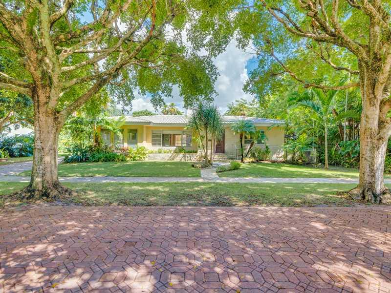 Custom designed family home on quiet tree-lined street. Each room built around light-filled garden views. Hardwood floors, tray ceilings and stunning double-sided coral fireplace. Sun-drenched Florida Room. Eat-in kitchen. Ideal layout for in-law quarters or home office. Two car garage with alley access. Private lush backyard with large circular patio for entertaining and room for a pool. Newer tile roof, central a/c and septic system. Walk to downtown Miami Shores, area schools and Community Center.