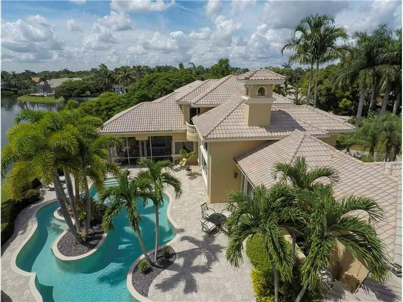The ultimate in privacy & breathtaking panoramic water & fountain viws,this 5bdrm/5.5bths plus guesthse 2 story estate on a 1/2 acre inner loop*Living rm has 2 stry glass,fireplce & marble flrs in the main-a*Ktchn w/large island,dbl. SS ovens,6 burner gas cooktop,48" refrig,wine cooler & w/in pantry*1st flr master retreat has hardwd flrs & all marble spa bth*2 addtnal bdrm suites on 1st flr w/wd. Flrs*2nd level 2bdrms,den & balcony*Summer ktchn,htd pool/spa w/swim up island,lrge lanai & 5 NEW A/C*Must See