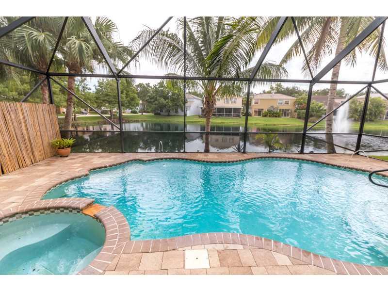 Beautifully renovated 4/2.5 home in Classics at Kensington. Upgrades include travertine throughout downstairs, granite counters, ss appliances, impact w&D, new HE a/c with sterilizer, all new baths, saltwater pool and much more. Step into your large maste r suite to find a large w/i closet with CA Closet shelving, master bath features all new porcelain tile, dbl vanities, 6 ft Jacuzzi tub, Carrera tile in the shower & all new fixtures. This home has been meticulously maintained and is a must see.