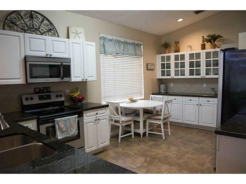 Miss Clean & Mr. Upgrades got married! Highly sought after 4/2 on the water. Open & spacious floor plan. Upgraded kitchen overlooks, family rm & backyard. Efficient A/C replaced in 2012. Separate formal dining rm & large bay window in living rm. Tastefull y updated Kitchen & Bathrooms w/ granite countertops. Updated Flooring throughout house. Upgraded light fixtures/fans. Extra clean home has fresh new paint inside and outside. Hurricane rated roof & garage door / accordion shutters throughout!