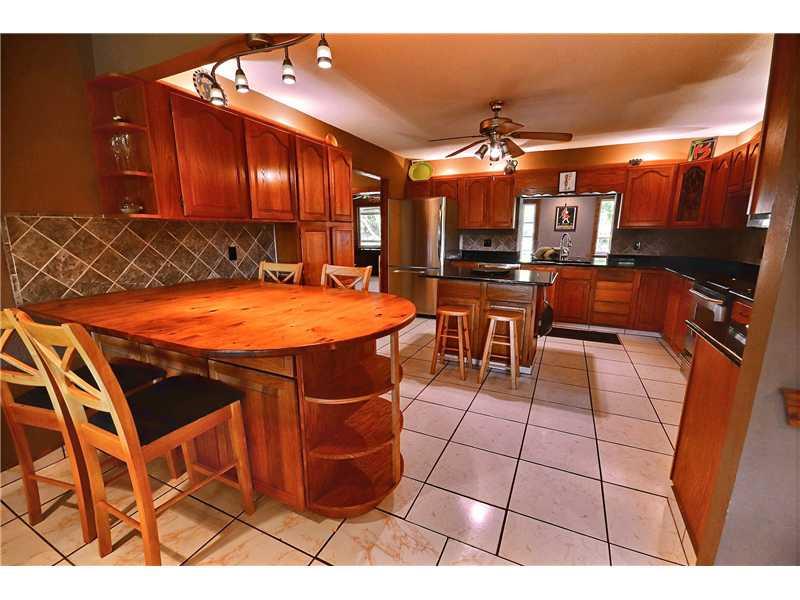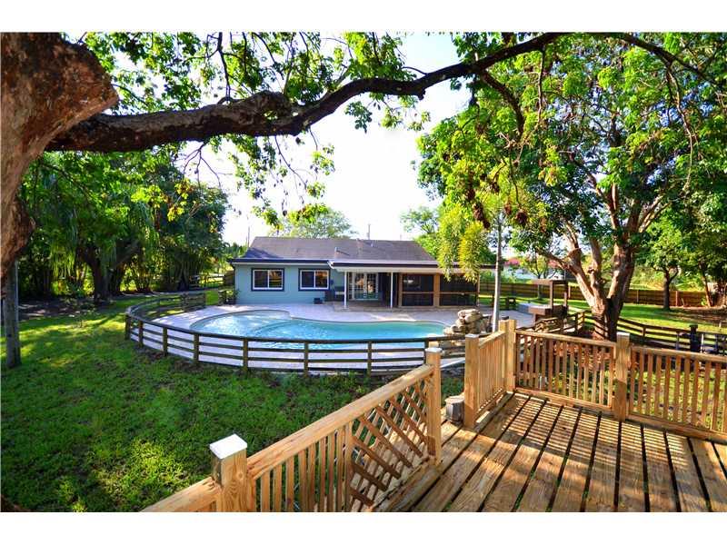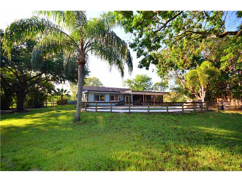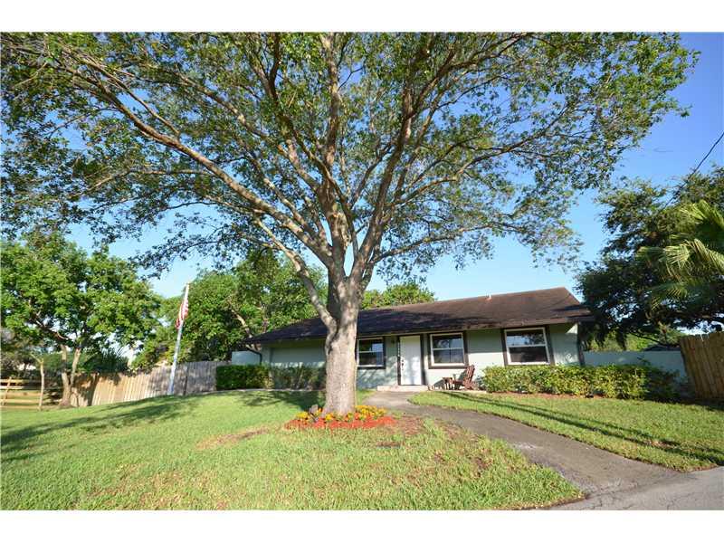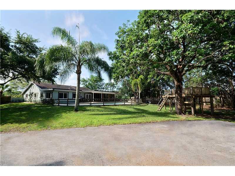 SPACIOUS SPLIT FLOOR PLAN SW RANCHES HOME ON 1.26 ACRES (54,871SQ.FT) CORNER LOT AT END OF STREET FEATURES MASTER SUITE W MASTER BATH APPOINTED WITH 2 SINKS, SEPARATE TUB & SHOWER. SPACIOUS LIVING ROOM, LARGE KITCHEN, CENTER ISLAND, GRANITE TOPS & BREAKFA ST AREA. FLORIDA ROOM & OUTSIDE LIVING PERFECT FOR ENTERTAINING COMPLETE W BRILLIANT POOL, COVERED PATIO, BBQ AREA & INVITING TREE HOUSE. TRULY AMAZING 1440 SQ FT STAND ALONE GARAGE FITS 4 CARS PLUS A GYM/MAN CAVE/PLAY ROOM W ITS OWN AC UNIT & 1/2 BATH.