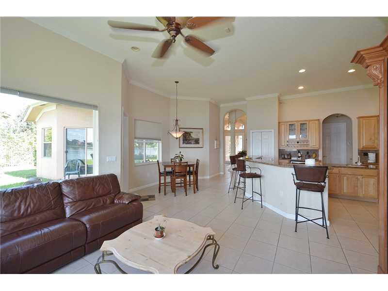 Exclusive and Private Gated Community in Davie with an extra den, Marble and Crown Moldings Everywhere! Kitchen features Island w/veggie sink/wine cooler/42" cabinetry w Up&Down lighting/SS Appliances-Master Suite offers 1/3 mile wide lake views! Mirrored Hall to LUSH master bath! HUGE lake views from Family Room, Living Room, Breakfast Area and rear Bedroom! Custom Garage Floor! Privacy and Luxury await!