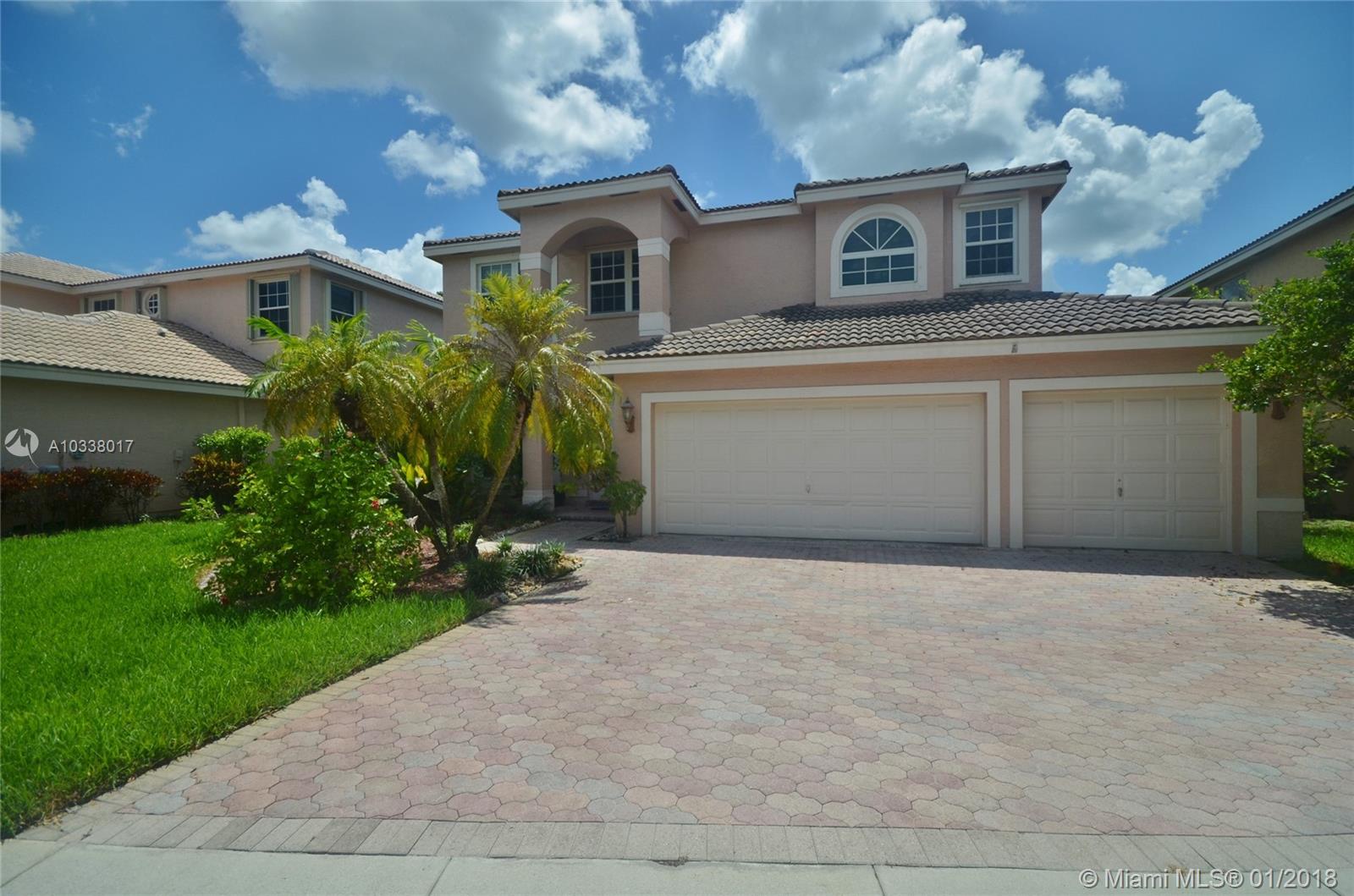 SELLER WILL ENTERTAIN ANY REASONABLE OFFERS..EXQUISITE 5 BEDROOM, 2.5 BATHROOMS, 3 CAR GARAGE HOME ON A GUARD GATED COMMUNITY. THIS HOME OFFERS 3,439 SQ.FT UNDER AIR. TRAVERTINE FLOORS FLOWS THROUGHTOUT FIRST FLOOR, AND BEAUTIFUL BRAZILLIAN CHERRY WOOD FLOOR ON MASTERBEDROOM.MASTER SUITE WITH HIS AND HERS WALK-IN CLOSET.LARGE MASTER BATH WITH ROMAN TUB WITH JETS. DETAILS INCLUDE KITCHEN WITH QUARTZ AND SUBWAY TILE BACKSPLASH,GORGEOUS WHITE CABINETS ,STAINLESS STEEL APPLIANCES AND CENTER ISLAND.CROWN MOLDING THROUGHTOUT AND ARCHITECTURAL MOLDINGS ON ALL WINDOWS AND DOORS ACCENT THE DESIGNER DECOR. IMPACT WINDOWS OF SECOND FLOOR AND HURRICANE SHUTTERS,2 PANEL FRENCH DOOR WITH IMPACT GLASS. A MUST SEE!!!!