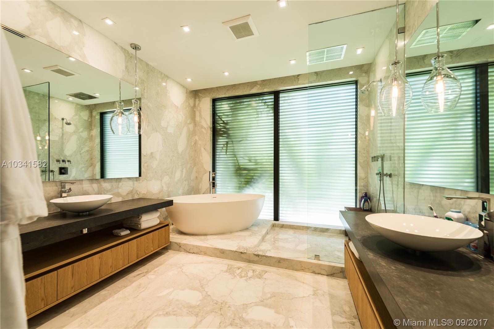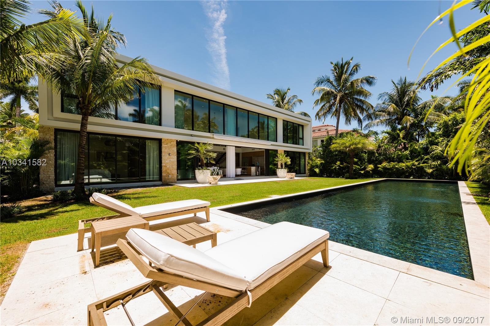 Brand new construction across from park on Sunset Island #2. Contemporary 5400 sq. ft. for a total of 6 bedrooms, 6.5 bathrooms, office, game room, double story living room, gourmet chef kitchen. Built by Todd Michael Glaser & designed by Domo Studio.