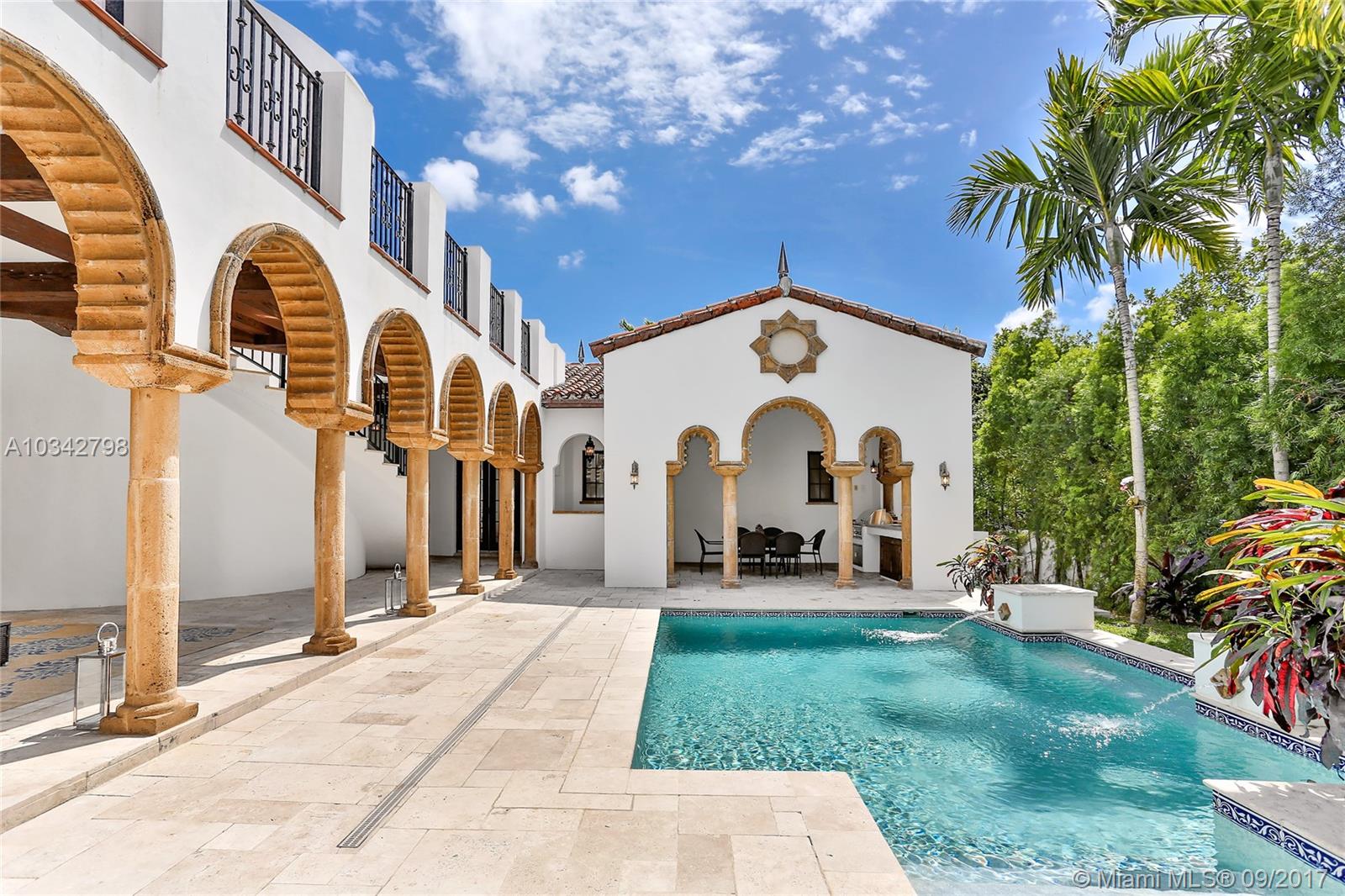 Truly special & unique Anadlusian Moorish-inspired home. Designed to suite the contemporary lifestyle while retaining old world details, some of which include handmade stonework & tiles imported from Morocco. Located across from the Biltmore hotel with a stellar view from the large second floor terrace. Featuring 2 private courtyards w/fountains, Marvin wood-clad impact glass windows & doors, covered loggias, in-law quarters, large den/office with vaulted ceiling, fireplace, elevator and much more!