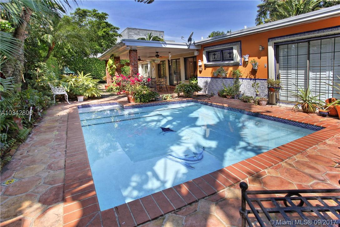 A beautiful gem! One story home with beautiful curb appeal. Absolutely charming 3 bed/3 bath home. Elegant reception area, dining and family overlooking pool & garden. Updated bathrooms, marble floors throughout. New kitchen with granite counters & backsplash. SS appliances. Pool with multi LED lights redone 2 yrs. ago. Built-in BBQ located in corner of garden. Covered pergola. Alarm, sprinkler system, mosquito control. Accordion shutters. 2 A/C units. Large storage. New grass in garden.