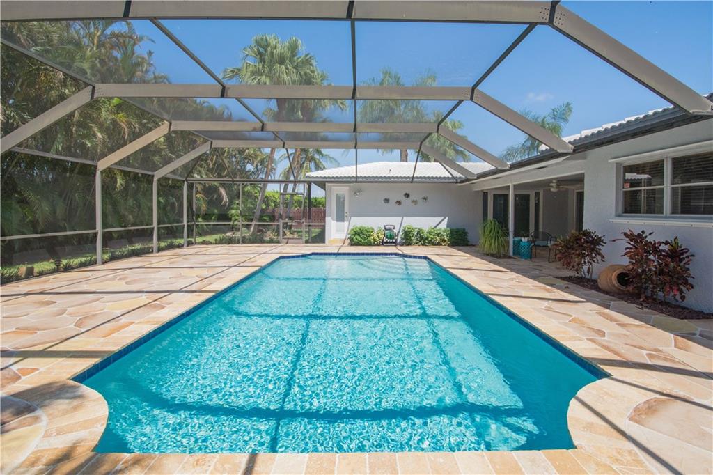 This lovely 3 Bed/2.5 Bath Home is remarkable! Freshly Painted exterior, newer roof + paver circular driveway. Remodeled Kitchen, Master Bath + half bath + Newer AC. Beautiful New French doors open to the covered sitting area, remodeled patio and pool on Oversized gorgeous lot with professional landscape. Such a peaceful Oasis! The screened in pool area is huge and a great entertaining area for family fun! This spacious light and Bright One story home has large 2 car garage and storm shutters.