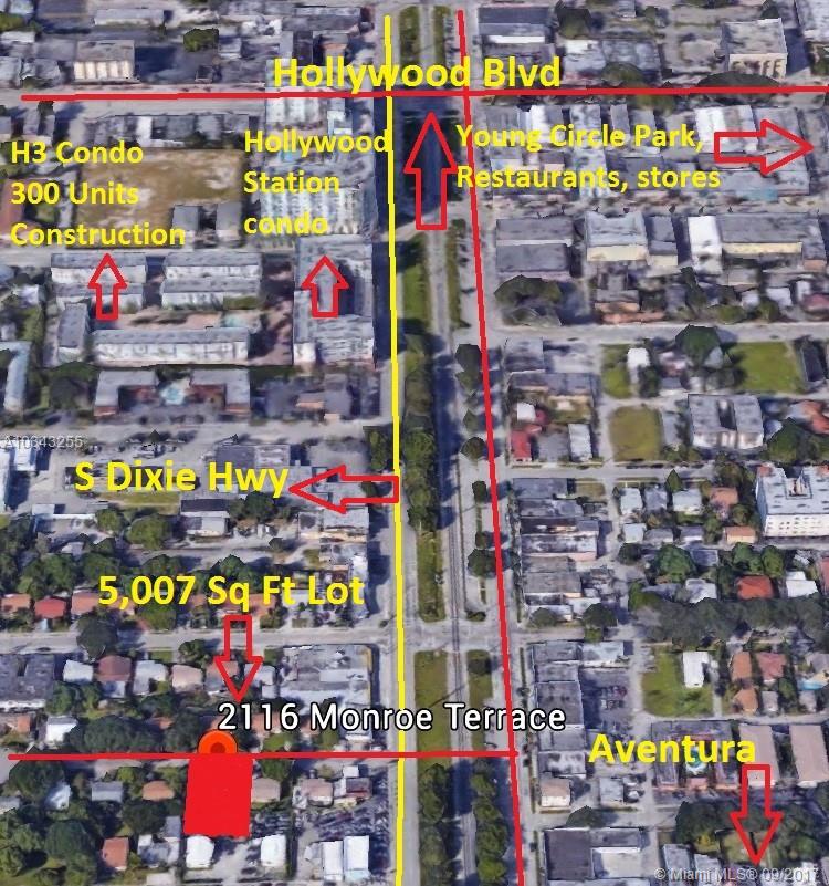 2/1 Single Family home into a 5,007 Sq Ft Lot. This area is growing fast, and zoning recently change to DH-3 ( Dixie Highway High Intensity Mixed-use District). Walking distance from Hollywood Young Circle. Easy access to beach/airport/port/highways. SITE SPECIFICATIONS: LOT SQ FT 5,007 - BUILDABLE 15,021 - ZONING DH -3 - MAXIMUM HEIGHT: 10 STORIES OR 140 FT . Take a look around the area ( one block N, S, E and W) with your potential visionary Investor, and you will agree that is a very rare opportunity. This property is currently rented at $ $1,100 per month.