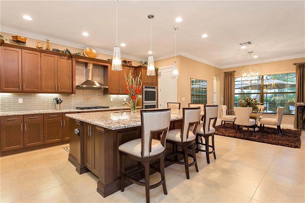 NO WAITING TO BUILD! BEAUTIFULLY UPGRADED WITH TOP OF THE LINE FINISHES! GLASS DOOR FOYER ENTRANCE, GREAT ROOM, OFFICE/DEN, CASUAL & FORMAL DINING ROOMS & HUGE LOFT! THE KITCHEN OFFERS WOOD CABINETS, GRANTIE COUNTERS, TWO PANTRYS, KITCHEN AID SS APPLIANCES & CENTER ISLAND! 20" TILE AND WOOD FLOORING, BUILT-IN CLOSETS, SMOOTH WALLS, TRAY CEILINGS, CROWN MOLDING, DESIGNER LIGHTING, IMPACT GLASS & SO MUCH MORE! TROPICAL LANDSCAPING, SCREENED PATIO, SUMMER KITCHEN AND FENCED YARD! GREAT COMMUNITY AMENITIES!