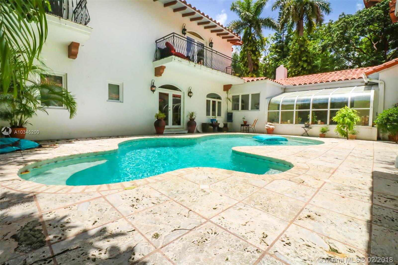 Beautiful Old Spanish located in the heart of Coral Gables. Large 16,400 sq. ft. corner lot lushly landscaped with royal palms and mature oak trees surrounding the coral rock walled-in grounds, along with a large free form pool. Home offers over 5,300 square feet with 6 bedrooms, 5 baths and with a 2 bedroom 1 bath guest house with private entrance. This is a spectacular historic Coral Gables home with large spaces located in a most desirable location. It has 2 working fireplaces, music room, sun-room