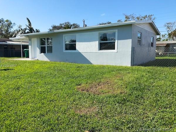 Beautiful Single Family Home close to Broward College Central Campus. This house is a beautiful three bedroom and one bath house. It looks like a new house inside. Nicely designed kitchen with wood cabinets, granite counter tops. Kitchen cabinets have a lifetime warranty. New A/C, new wifi AC Thermostat with original manufacturer warranty. New floor tile throughout, new stainless steel appliances, new light fixtures and fans, new celling stucco and interior wall stucco, new doors, new 4 inch baseboard throughout, new interior and exterior paint with Sherwin-Williams Paint. Large fenced-in backyard. Separate laundry room with washer and dryer included. Large one cover carport. Bathroom has excellent finishes and a comfortable large tub. Extra closets for storage. Concrete build home.