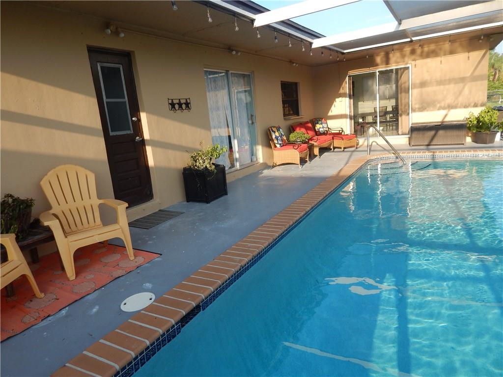 Great family home. This 3/2 has it all. Screened in pool and lake make the back yard a paradise circle drive way for plenty of parking. Open floor plan with family dinning and living room. Gas stove allows for hurricane cooking and hurricane shutters for protection. Upgraded cabana bathroom. There is no association fees and this home is easy to show. Close the doors right away so the cats wont get out. Curtains and curtain rods do not stay with the house, sellers will take them with them. Blinds stay