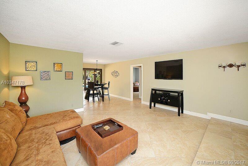 Gorgeous pool home on a quiet tree lined street. Move-In ready with a wonderful open concept with lots of natural light & a view out to the pool the moment you walk through the front door! Split bedroom floor plan. Lovely cream colored marble-like tile set on a diagonal throughout the living areas. Open kitchen with tile backsplash. Separate laundry/pantry with side by side washer/dryer. New neutral carpet in all of the bedrooms. Nicely remodeled second bath. Huge master bedroom with big walk-in closet. The entire back of the home has new oversized impact sliders & a gorgeous view out to a lushly landscaped tropical pool area. Perfect for entertaining! Fabulous new paver patio around a tropical "free form" pool. Garage was converted into a large bonus room/office.