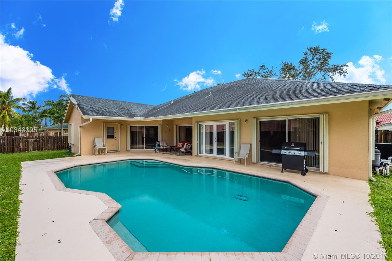 WOW! It's hard to find a ranch style 4/2 with pool in this price range! Flowing "Candlewood" model with lots of extras. Updated kitchen with stainless package, GORGEOUS remodeled master bath. NO CARPET! Tile through out. Formal Dining, Living Room, Family room, Breakfast area AND interior Utility room. Covered patio leads to large corner lot with easy gate access and lots of room for toys or pets. Big sparkling heated pool. Newer AC, Roof 2006, Accordion shutters. Terrific schools. This is one that is a MUST SEE!