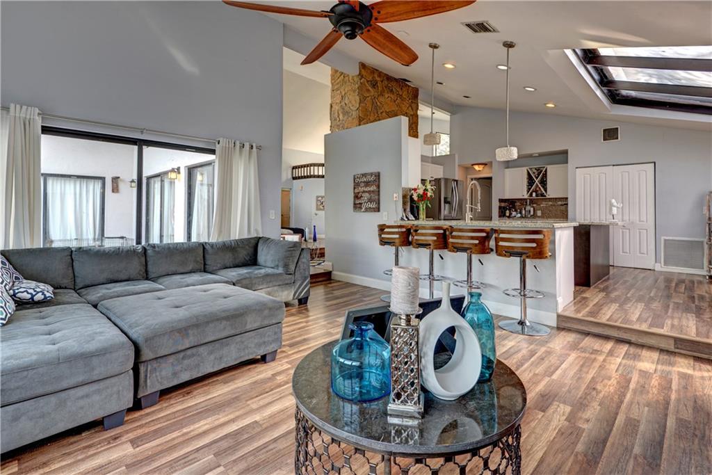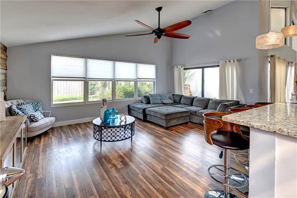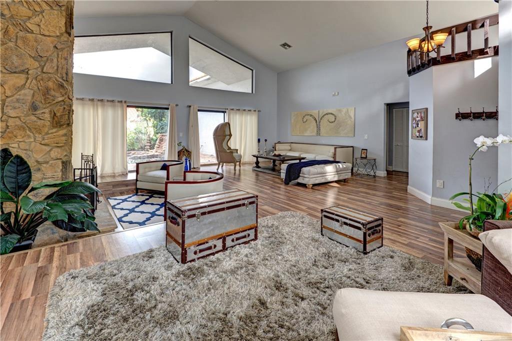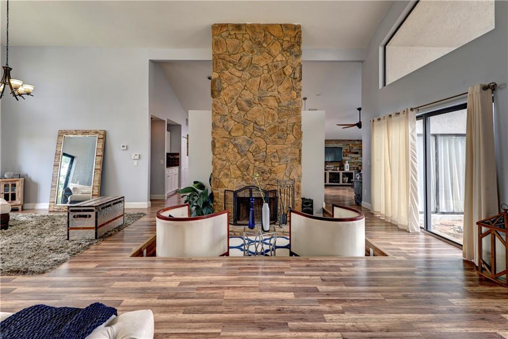 WOW!!!!! Substantially remodeled 4/2 custom (converted garage) corner lot POOL home,vaulted ceilings & open layout. Everything updated! Custom designed kitchen w/high end SS appliances & double oven, custom built cabinets w/soft close,granite counters, beautiful back splash, breakfast area & 2 snack bar islands. Tastefully painted. Newer wood floors throughout. Formal dining, Fireplace w/reading sitting area, 2 family rooms, sliding doors to make home open & bright & can see pool & patio from every room.