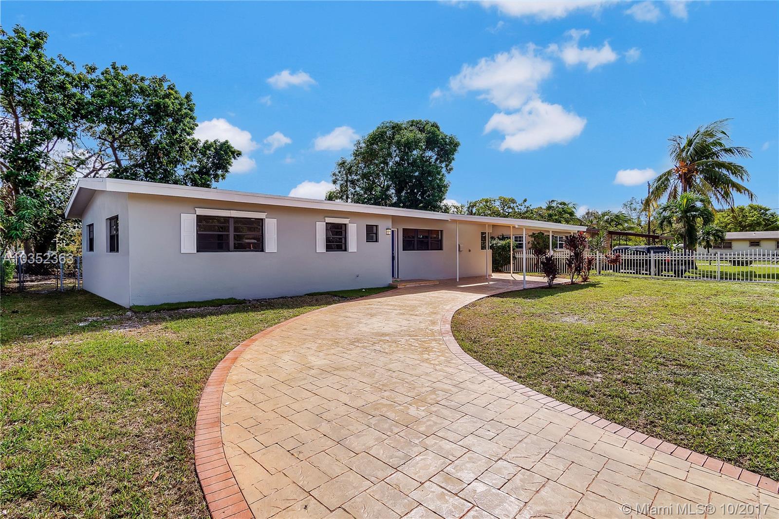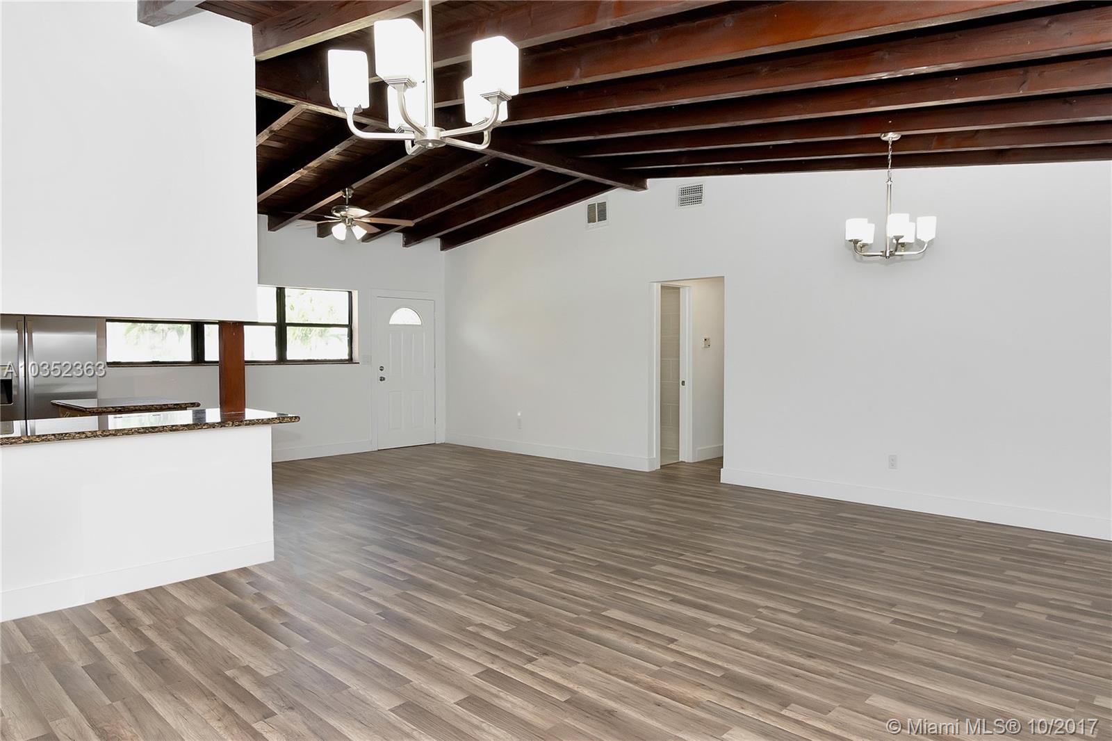 Stunning modern newly renovated 3 Bedrooms, 2 Bathrooms, Bonus room as Den/4th Bedroom, features oversized living area with super high ceiling, open plan family and dining, Features include: Just painted inside and out. Central A/C, Laminate Wood Floor, fully renovated bathrooms, kitchen with beautiful granite counter tops and new stainless steel appliances, LED lighting, new tankless water-heater, Easy access to I95, Palmetto Expressway and Turnpike. Close to shopping, grocery stores, restaurants and more.