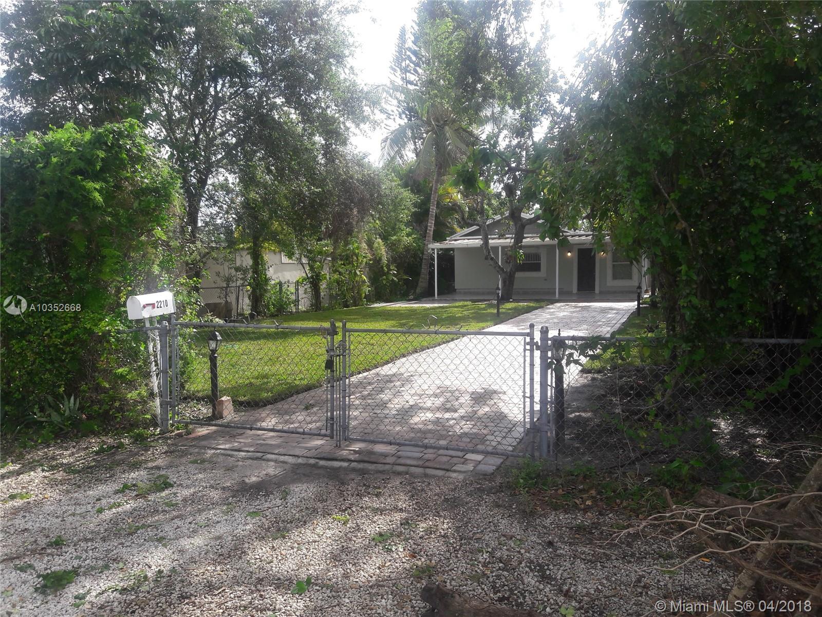 Beautiful renovated 2 bedroom, it is a charming house with 2 beautiful bathroom. 1 with a tub and the other one with a large size shower. All water lines, sewer lines , electric lines are new. Ac and roof are 7 years old. This house is perfect for a couple or a couple with a kid. 2 sheds in the back yard. The property is fenced all around. 2 Avocado trees that supply hundreds of avocados every year, and 3 coconut trees. The house has hurricane shutters and very large paved parking and sidewalk. Also 300 sqf of covered porch with aluminum roof above the porch. Close to many schools and 1.5 mile from the beach. Last Hurricane damaged the Yard look.