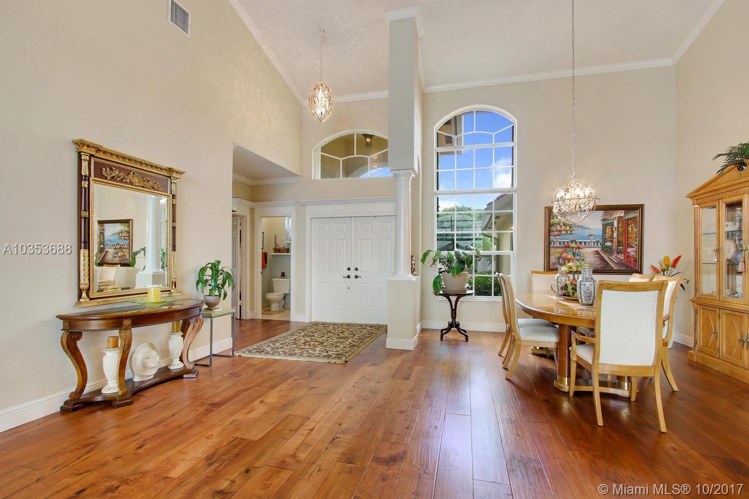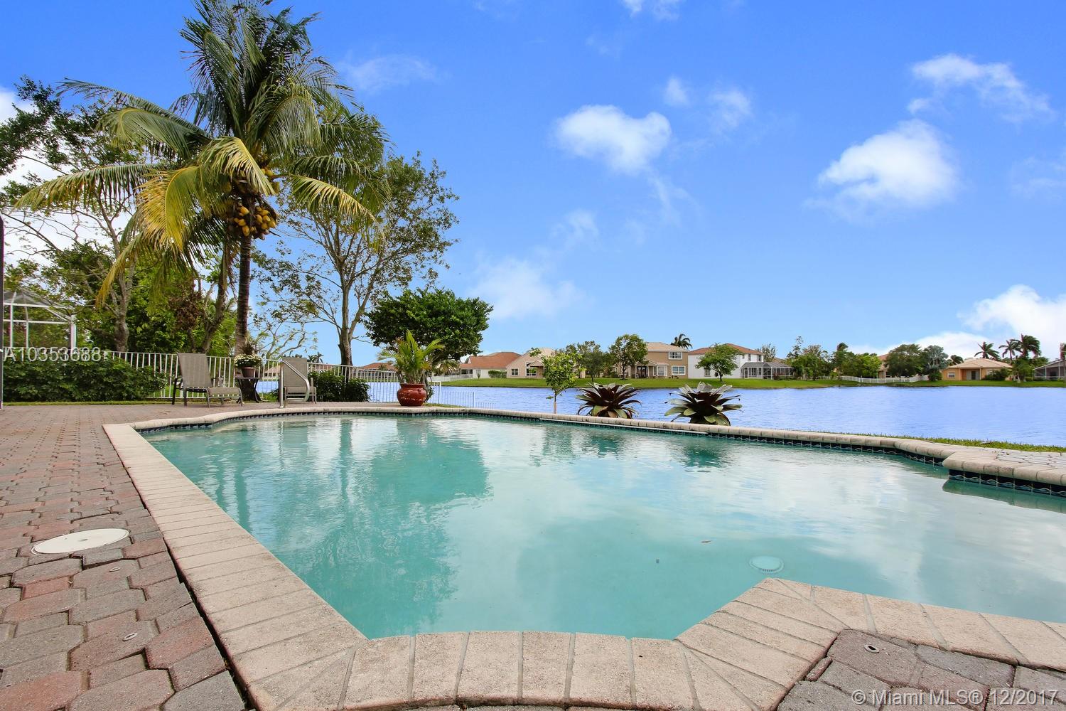 Come tour this elegantly updated 5 bedroom 3.5 bath waterfront home in Pembroke Falls! Home is fully equipped with hurricane shutters, pool, screened patio, cabana bath, downstairs master and 3 car garage. The sweeping windows provide ample light to showcase the massive formal living room and dining room, overseen by an airy loft. The kitchen is open to the family room overlooking the gorgeous water view and features wood cabinetry, granite, double oven and gas stove. Don’t miss this excellent opportunity!!