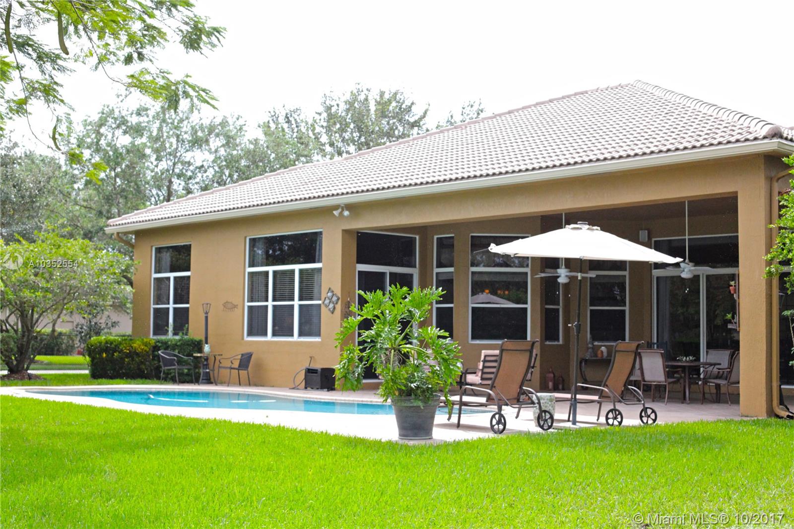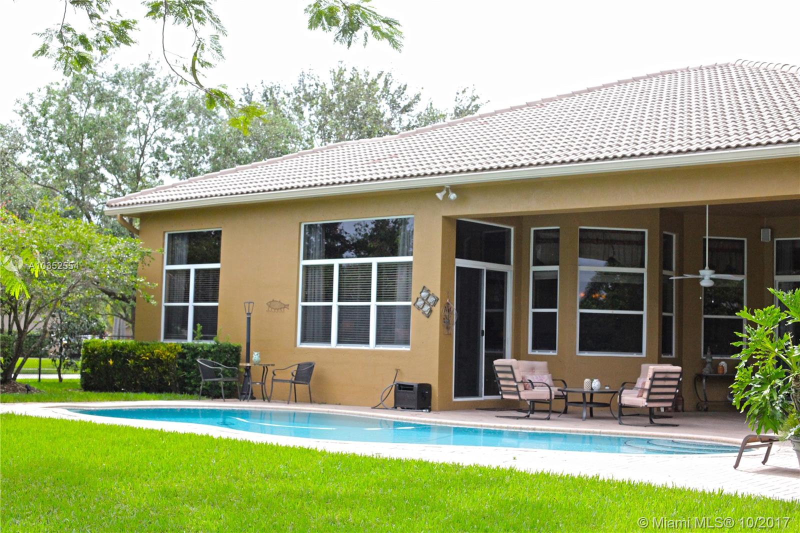 First time ever in the market, Beautifully decorated Gramercy Model home in exclusive Imagination Farms. Zoned for Weston and Davie A+ Schools. Freshly painted split floor plan with custom draperies. Bright layout with high ceilings looking into great yard. One of the few equestrian lots in the community. Perfect for entertaining indoors and outdoors. Covered patio area with a cabana bathroom.
