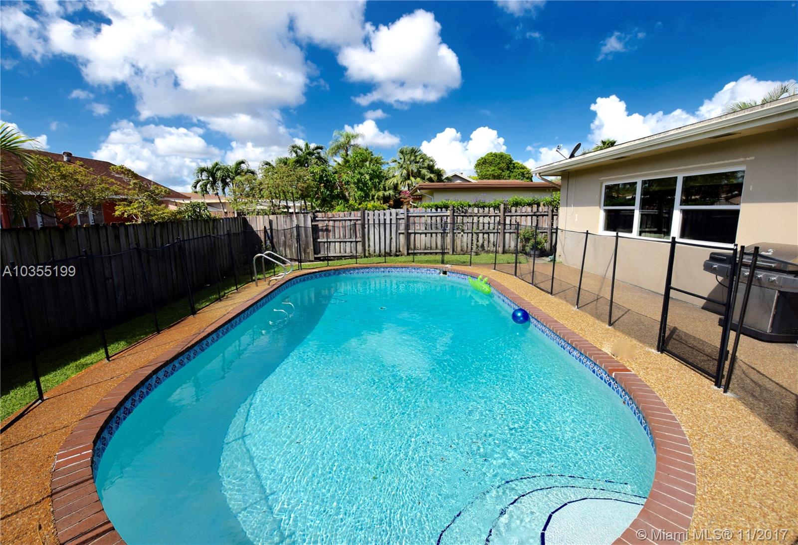 This is it! The one your buyer is looking for and has everything they need! The seller has done a fantastic job remodeling this home. Porcelain tile and wood floors. Outstanding kitchen that has been extended with light granite,wood cabinets and cooking island. Bathroom was just remodeled last year with all new plumbing. Impact resistant windows throughout the house including the front and garage door. Once you step out the french doors you will feel a sense of relaxation in the covered patio that looks onto the pool complete with child fence and large grassy backyard.