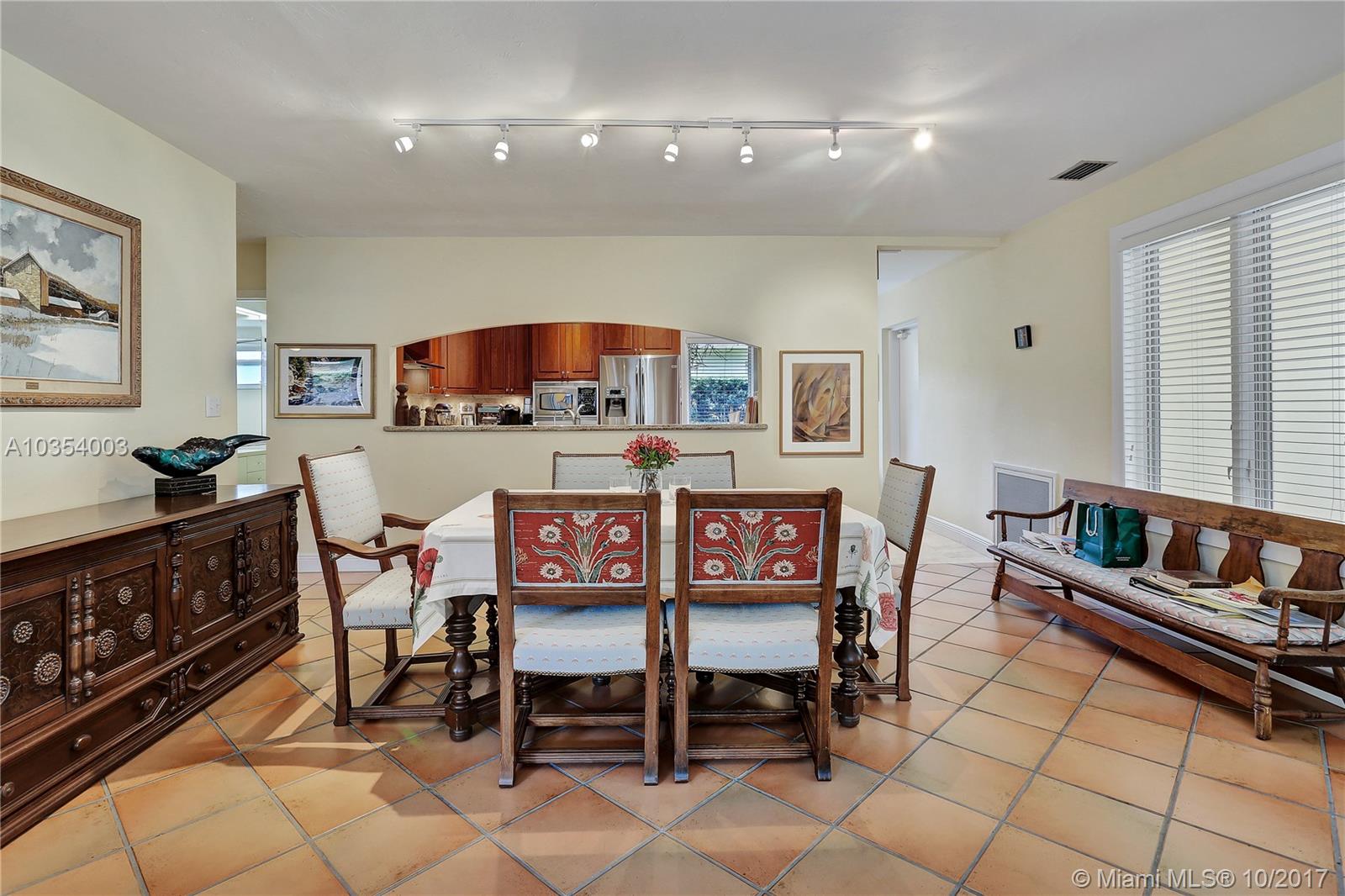 Come see this open and inviting 3 bedroom, 2 bathroom home in beautiful southeast Coral Gables. Step inside and be awed by the spacious living, family, and dining rooms. Large impact windows and doors allow natural light to stream in. The recently renovated kitchen with plenty of storage is perfect for parties and family get togethers. The master bedroom includes a Coral Gables rarity--2 walk-in closets and a large master bathroom with lots of potential! Want to relax after a hard day at work? Step outside under your beautiful pergola and enjoy the gentle trickle of the fountain and the large tile patio with plenty of room for outdoor seating, tables, and umbrellas.