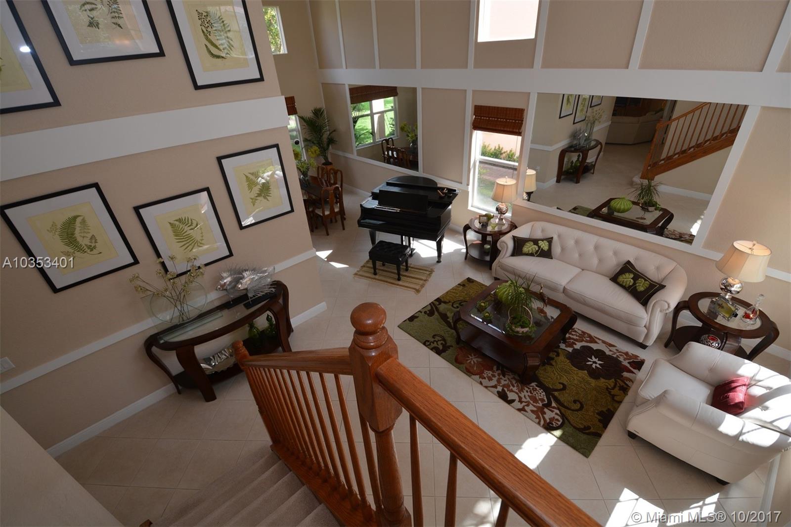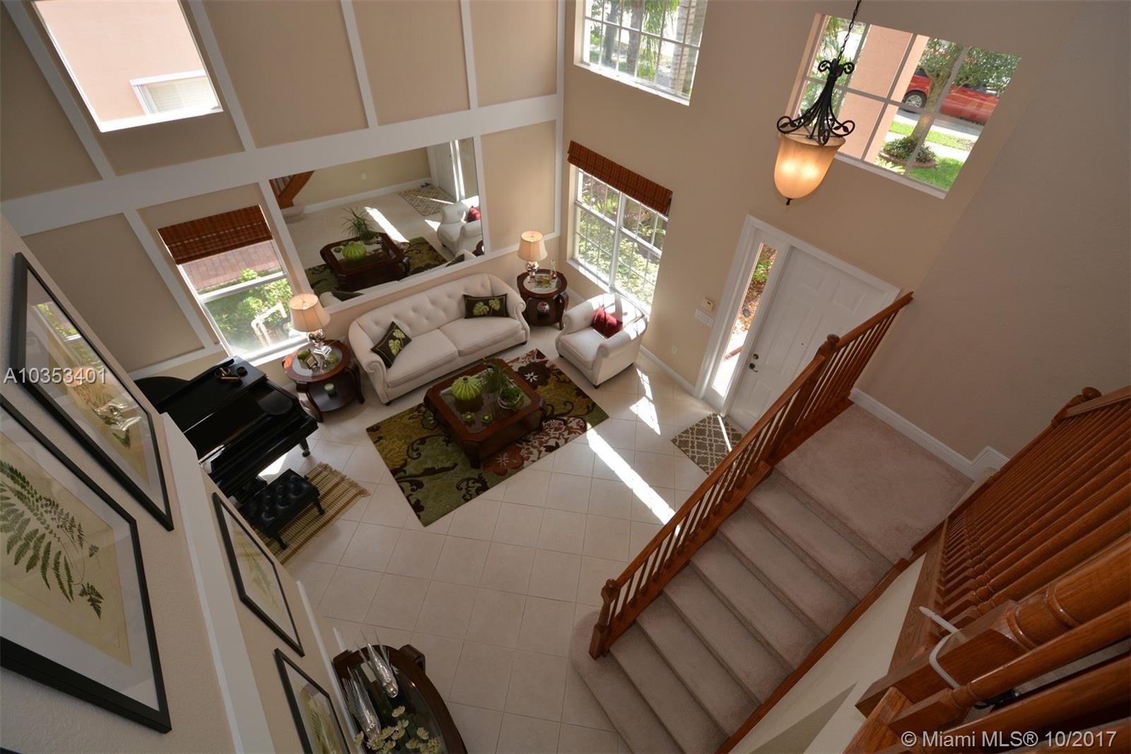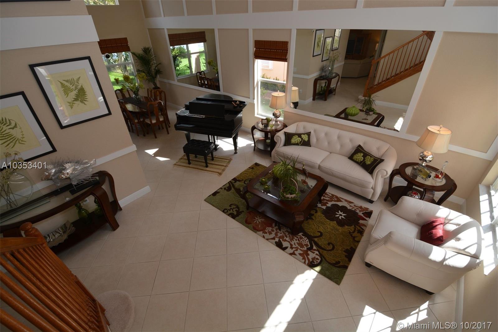 Impeccable is an understatement. Beautiful 2 story home w/Premium lakefront lot in highly sought after Sunset Falls Community. It features breathtaking panoramic Lake front views over a mile long. Open floor plan encompasses five spacious bedrooms with 3 full updated bathrooms & kitchen. Bedroom & full bathroom downstairs. The vaulted ceilings add to the expansive elegant feel. Balcony off the Master Bdrm great to enjoy entrancing sunsets and sunrises unique to this premium oversize lot. Patio ideal for entertainment or evening dinning al fresco. This home has been meticulously taken cared of. High tech security system. Brand new a/c handler & a/c unit. Crown molding and baseboard throughout. beautiful mirrors and wall decor Victorian style. Numerous upgrades. Great house!
