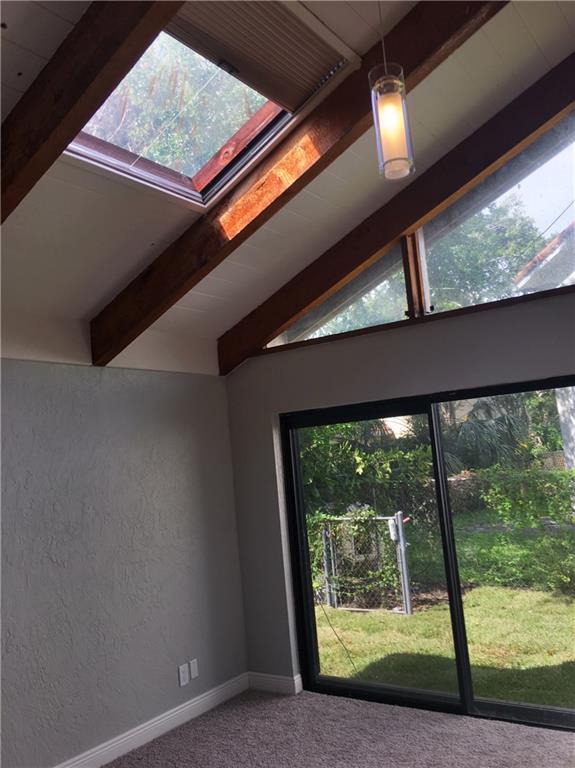 Back on market.First buyer didn't appraise,second buyer defaulted.Sold fast 2x. Vaulted ceilings with elegant wood beams, tasteful updates, and on a large wooded, newly sodded lot.Privacy fencing,mature trees,and lush landscaping.Screened in lanai patio.New kitchen with premium appliances,cabinets and counters.New 24" tiles throughout main with premium carpet in bedrooms. Bathrooms with elegant fixtures. Master has skylight, vaulted ceilings, cedar closet, and shower with an atrium.All repairs are done!