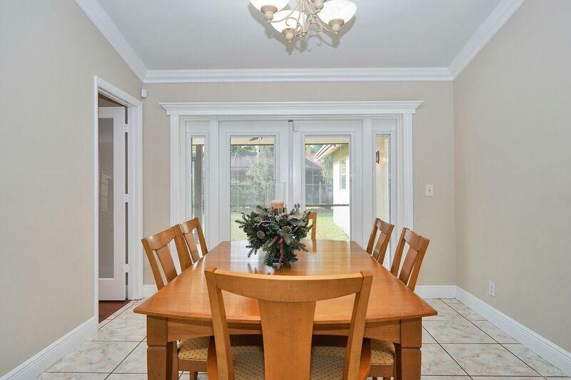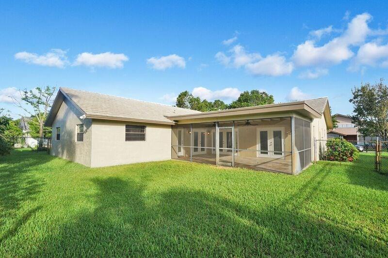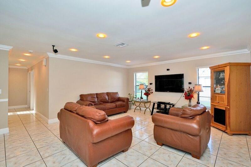 Great home! Priced Right! Turn key condition. Open concept floor plan; newer A/C; updated eat in kitchen w/ S/S appliances & granite countertops; updated master bath; hurricane impact windows/doors; wood floors in bedrooms; formal living/dining/family rooms; newer washer/front loader dryer; hurricane impact French doors in kitchen & master bedroom exiting to large screened patio; fenced yard w/ room for a pool; crown molding. Great schools. Must see to appreciate