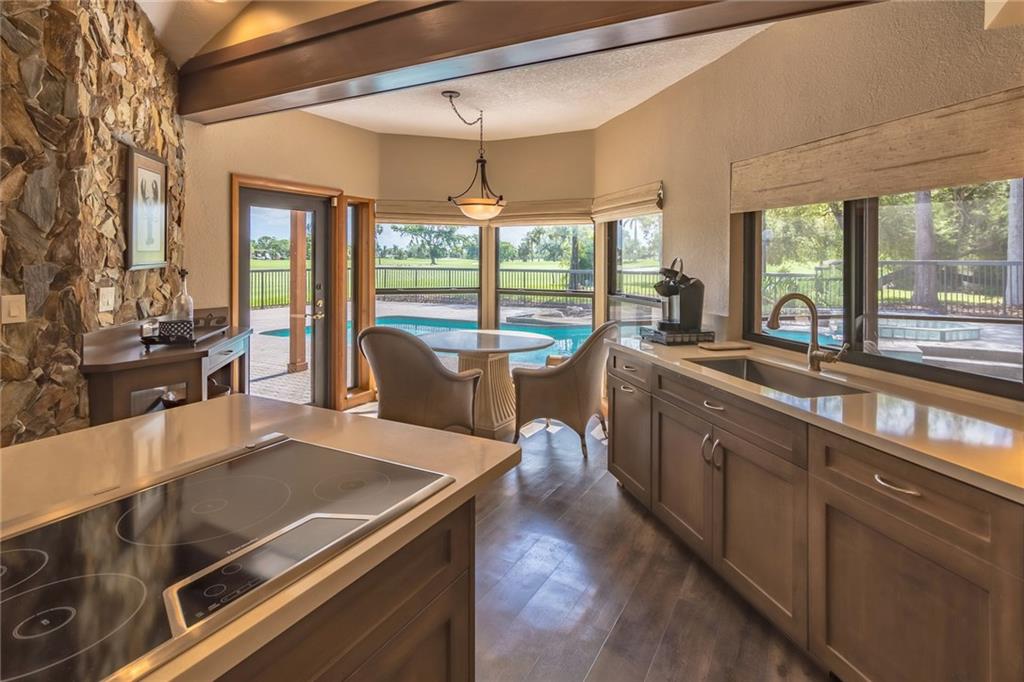 Spectacular golf course views from this unique custom built REMODELED home on a cul-de-sac half-acre lot! Featuring 4-5 bedrms, 3 full upgraded baths & 1/2. Vaulted ceilings, private loft style master bedrm upstairs soaring ceilings, oversized deck overlooking golf course. Upgraded master bath his/her vanities, separate makeup vanity, whirlpool tub & oversized marble shower. Updated kitchen custom cabinetry, quartz counters & stainless steel appliances. Impact doors & shutters thru-out. NO HOA!