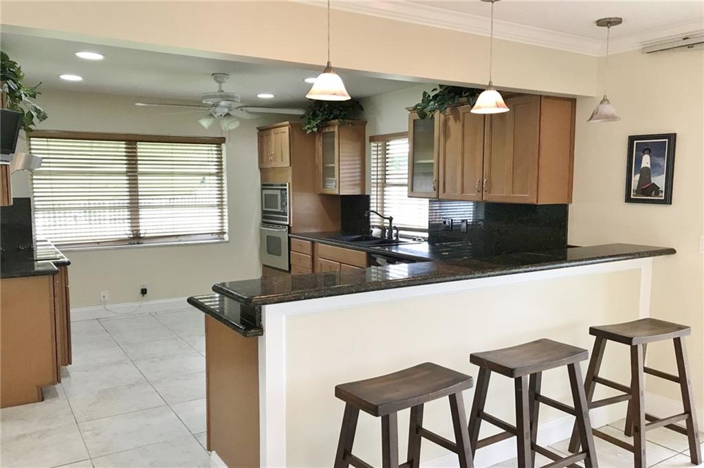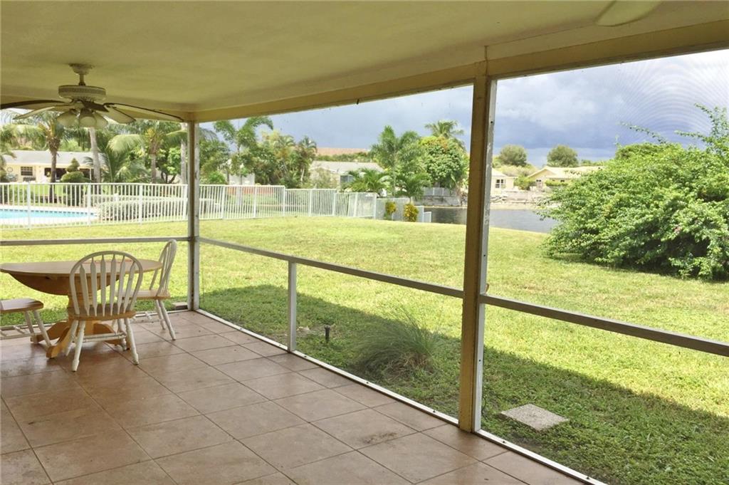 This is one sweet lake front home in West Palm Aire. Double lot with 175' of waterfront. 2 bedrooms and 2 newer baths. Remodeled kitchen with granite and stainless steel. 18' ceramic tile. Crown molding throughout. One car garage with great screened in patio with kitchen pass through for those great parties. Steel/tile roof in 2006. A/C 6 years. Plenty of room to expand or install the pool of your dreams!
