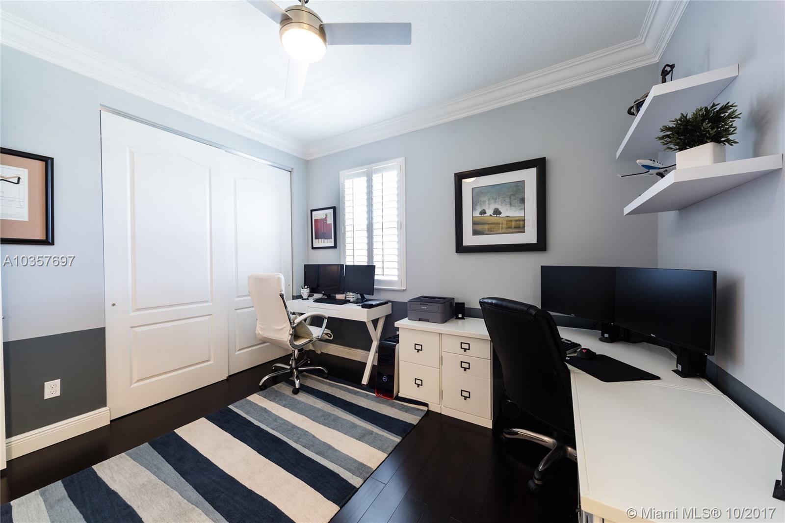 Step into the home of your dreams and enjoy its luminous design! It is obvious that the utmost attention to detail was paid from start to finish when designing and building this home. This spacious beauty offers 5 bedrooms and 4 bathrooms, including one bedroom on the first floor it also features, plantation shutters, crown molding, Bamboo wood floors, upgraded railing on the stairs, extended terrace, impact windows, stainless steel appliances and much more. Enjoy a short walk to the resort-style clubhouse with a state-of-the-art fitness center and many more amenities. Come see it for yourself, I guarantee you'll fall in love!