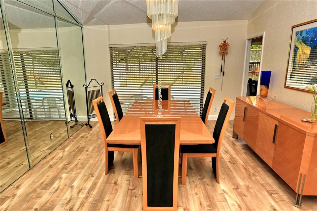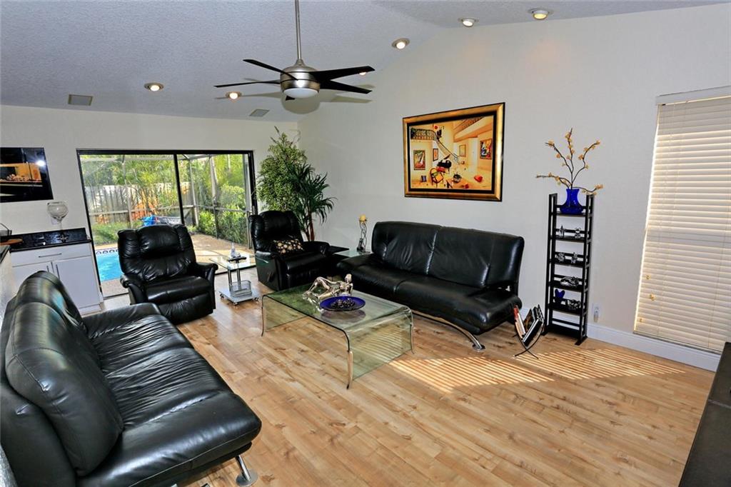 Spacious, 4 oversize Bedrooms & closets, 2 Baths, with pool. UPDATED kitchen, granite countertops, breakfast table & SS appliances. New, wood/laminate flooring. Abundant high-hats throughout, family room equipped with Surround Sound Pool diamond brite redone in 2015, both bathrooms has direct access to pool. New Roof in 2006, new a/c Oct. 2017, accordion shutters. Fully fenced backyard for safety of kids & pets. Walk to nearby parks. Truly a sensational home. Furnishings negotiable & motivated seller!
