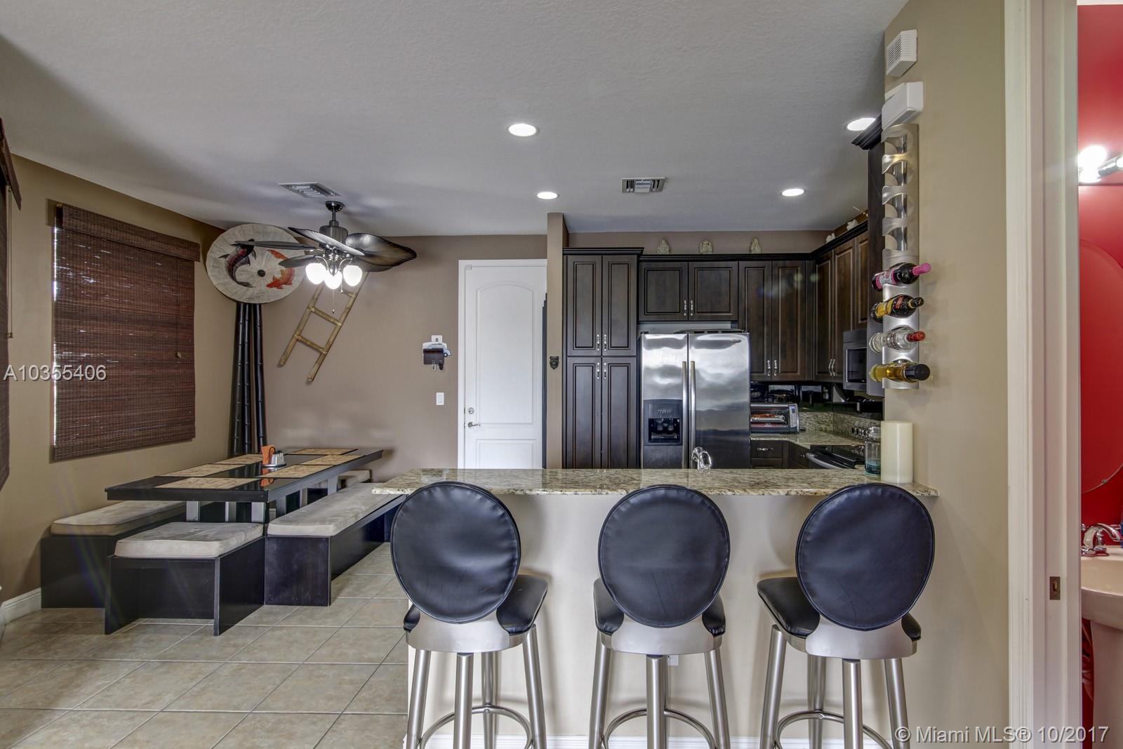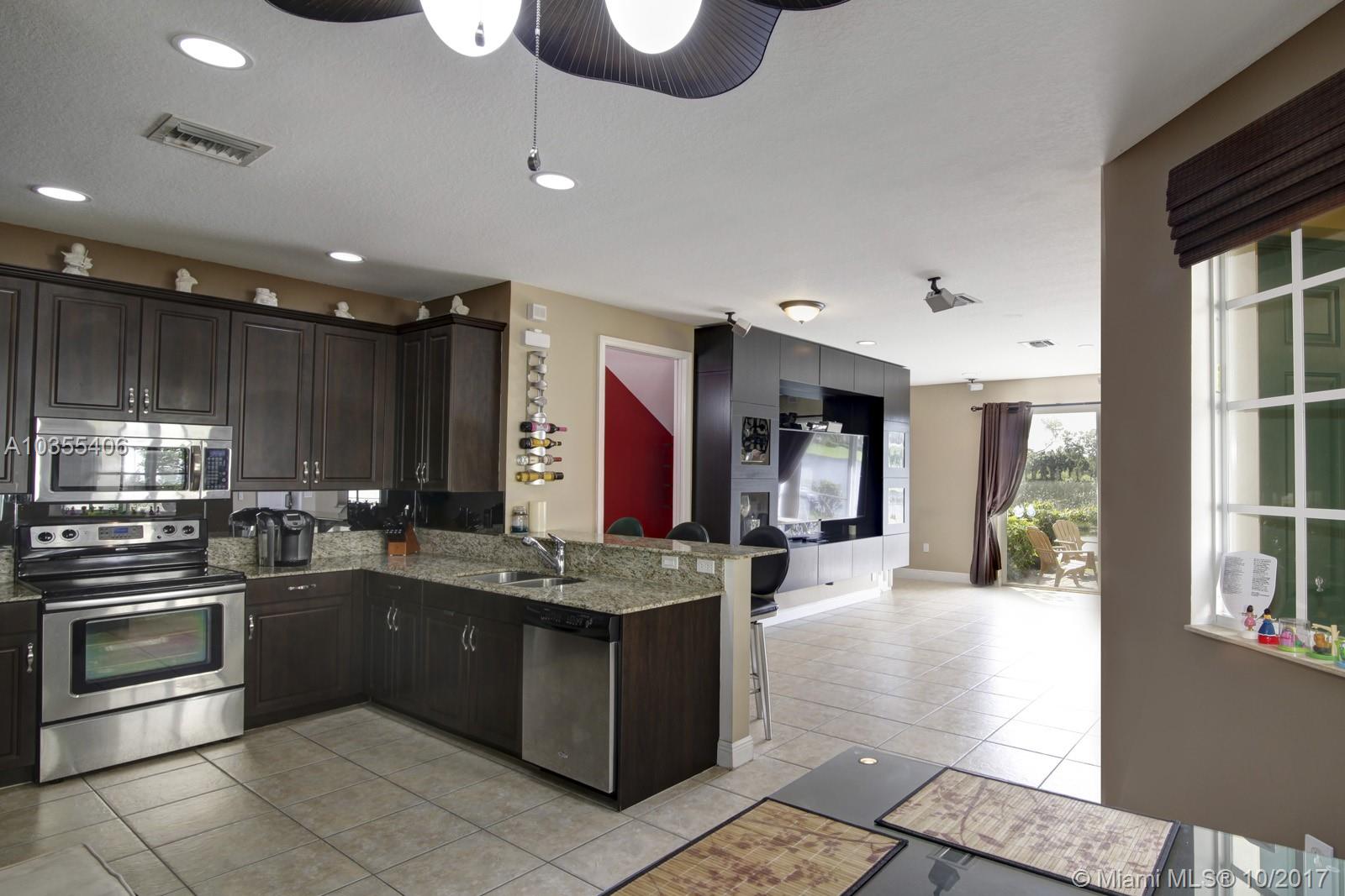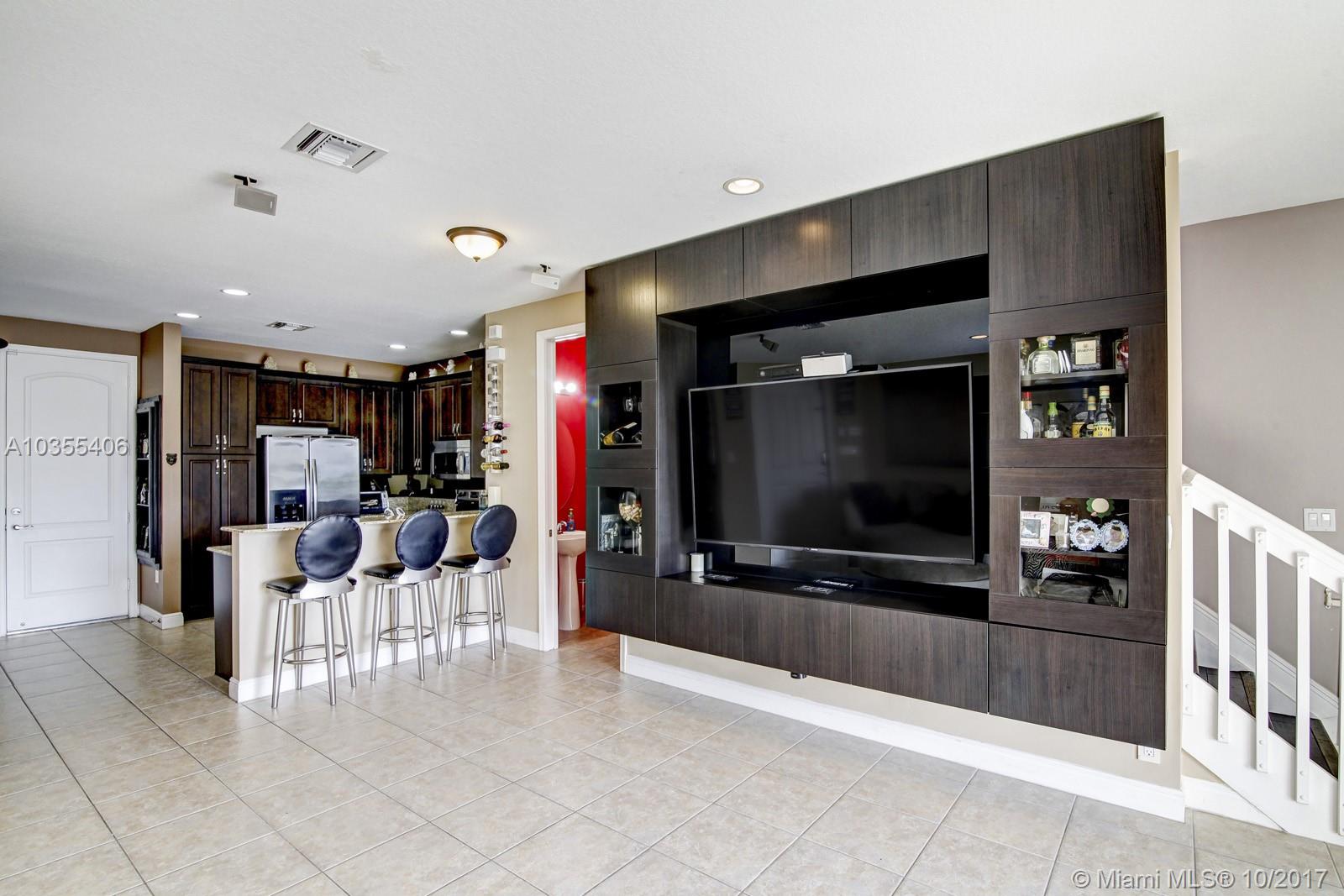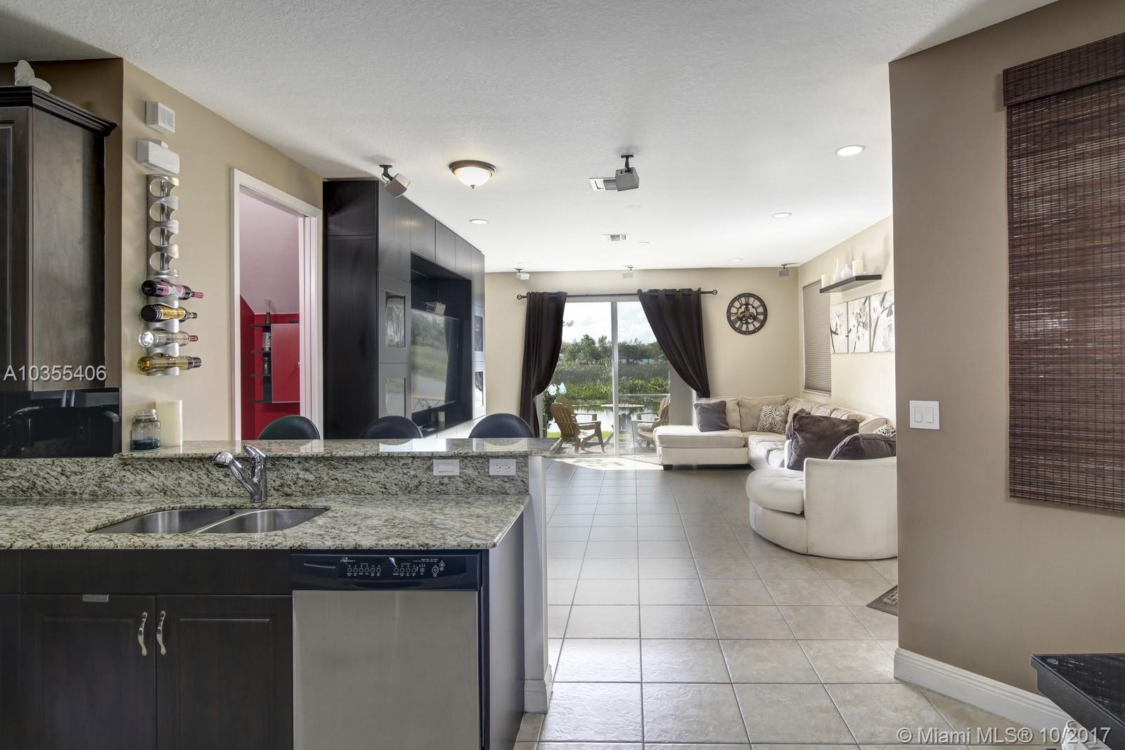 Rarely Available Stunning Townhome with 2 car garage Located in the Saddle Bridge community with a Peaceful Water View with many upgrades including the 42 inch kitchen cabinets with granite counter tops, custom backsplash , stainless steel appliances and custom built ins. LIving room has wide open with custom built in entertainment center that is sure to impress many. Upstairs boasts real Italian Tile floors that look like real wood, large master bedroom with more custom built in storage with large bathroom with a soaker tub and shower. Minutes to Nova southeastern University College Campus, Turnpike, Dining, Shopping and much more. ENTIRE HOME HAS HURRICANE IMPACT WINDOWS AND DOORS .