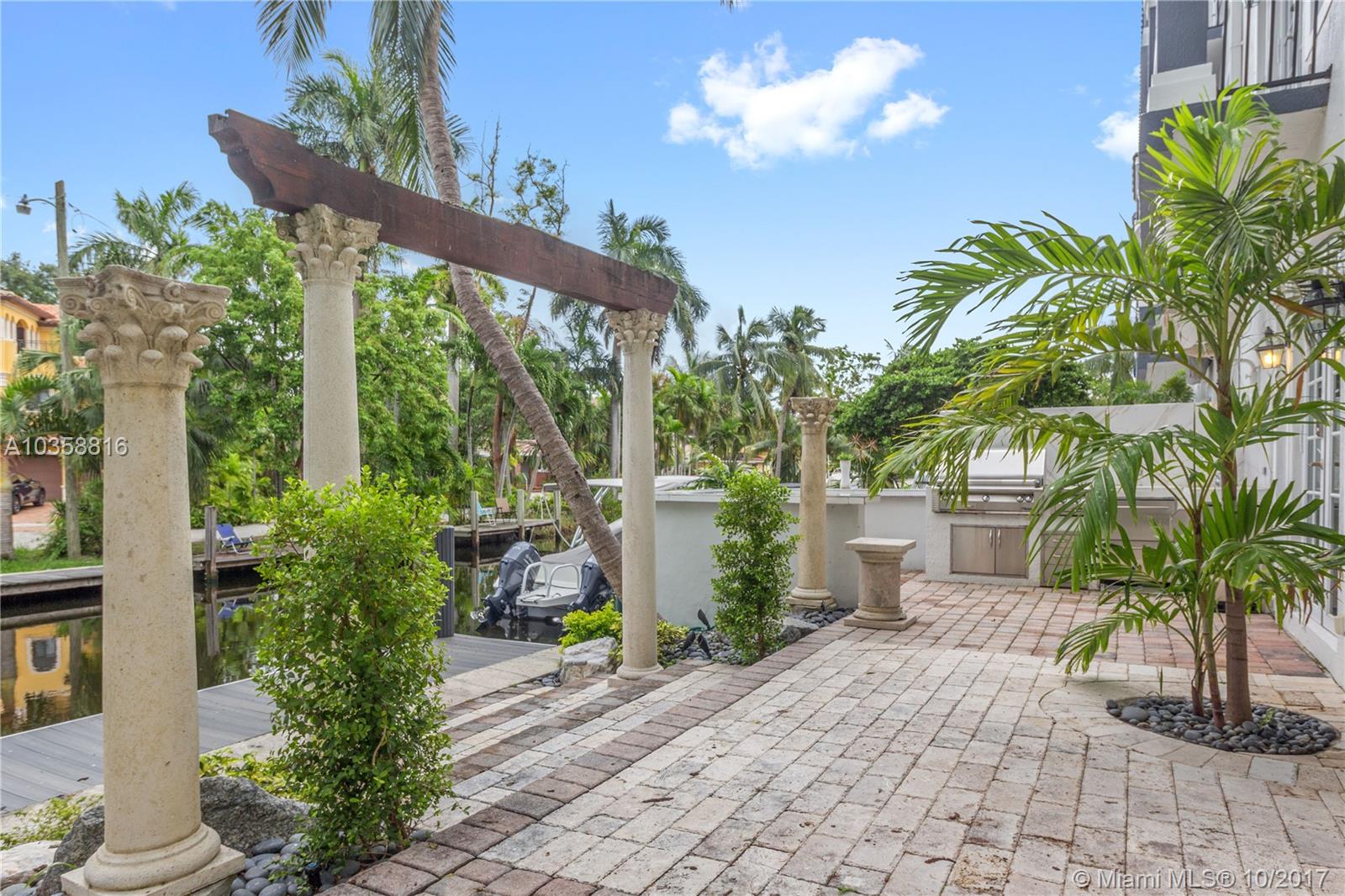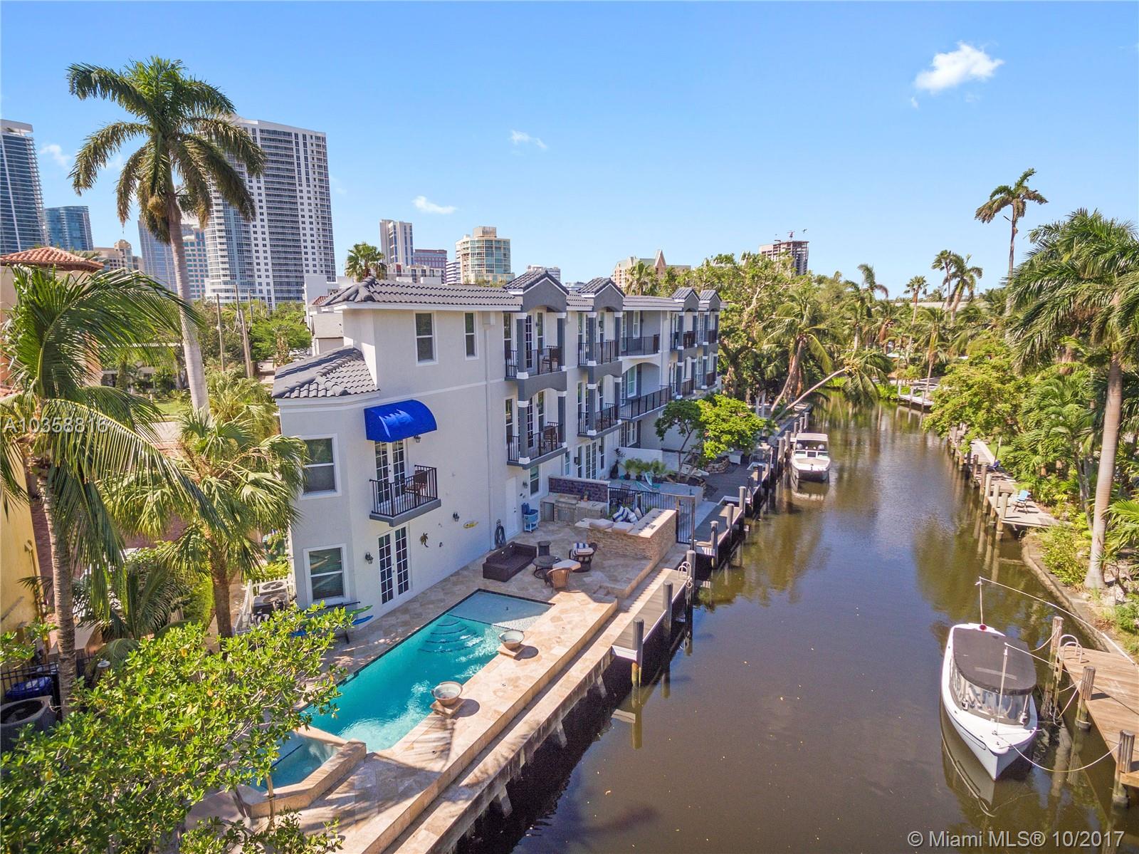 Gorgeous Furnished European Waterfront townhouse, steps off World Famous Las Olas Blvd w/ almost 90' on the Water. Features: Custom Built-Ins, Crown Molding, Wrought Iron Rails, 4 Balconies w/ French Doors, Whole Home Audio, LED Lights, Hunter Douglas Silhouette & UV Shades w/ Cornices. Chef's Kitchen w/ Subzero, Viking Gas Cooktop, Double Thermador Oven, U-Line Wine Cooler. Entertain in Custom Wine Room w/ French Doors leading to the Lush Garden w/ Summer Kitchen w/ Alfresco Grill & Stovetop, U-Line Refrigerator Drawers, Custom Gas Torch Columns, Water Misters, Decorative Water Fountain & Fire Pit overlooking Canal & New Private Dock. 2 Car Garage, 1/2 being used as bedroom w/ AC & Closet, can be converted back. Cruise the Ocean, Walk to Work, Dining & Shops, Bike to Ft. Lauderdale Beach!