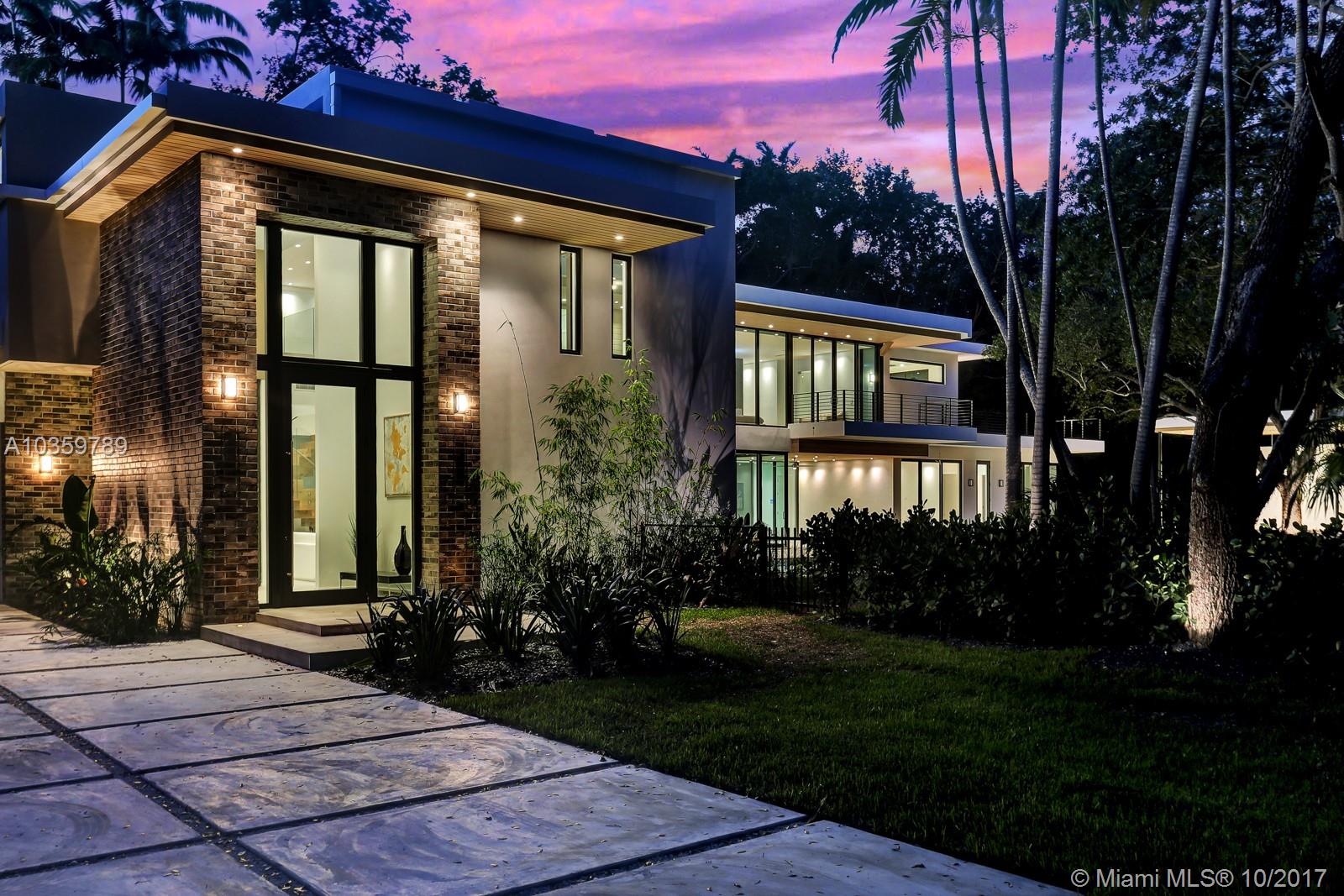 Prime location in North Pinecrest. Unmatched privacy in an urban oasis at end of idyllic cul-de-sac setting. Unique design, inspired by famous German Bauhaus School combined with Miami coolness and the South Florida vibe. Dramatic 22' ceilings, open floor plan with spectacular views from every room and hallway. Make a statement as your guest walk through a glass breezeway to their private two room guest suite. Upstairs home office opens onto gallery overlooking the downstairs living, kitchen offers the highest quality design and Miele appliances and if that was not enough you can take the party outside with an outdoor kitchen and summer lounge.