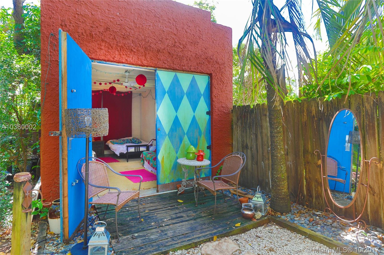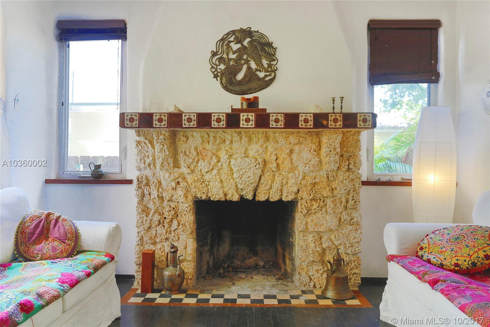Incredibly adorable historic 1920's treasure. This "Jungalow" gem is nestled in a lushly tropical setting in up-and- coming North Miami (NOMI). This area is a conveniently located, diverse, and culturally rich area just north of 125 St Mid-century Row shops and cafes. Cozy rustic home is an eclectic mix of modern and original architectural detail- coral rock fireplace, hand-painted beamed ceiling, wood floors, and unique handcrafted doors by master artisan. 2BD/1BA plus garage/meditation room. Perfectly peaceful pad for an unbeatable price UNDER $300K