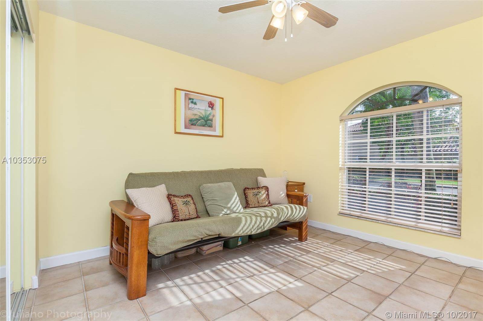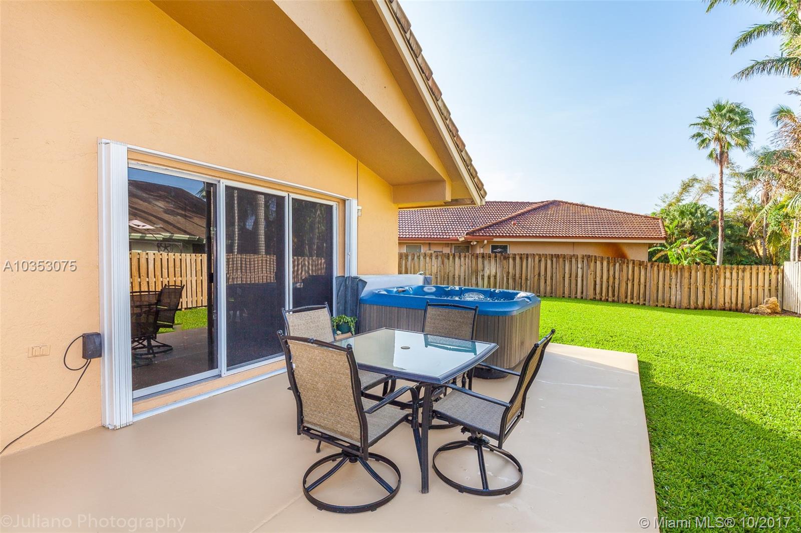 Lovely home in the Heart of Pembroke Pines. The Estates of Tanglewood Lakes is a secluded gated community offering privacy and security. This meticulously kept home has vaulted ceilings and offers plenty of light. The master bedroom and bath are spacious as well as other living areas. The home has an outdoor Jacuzzi, Culligan Water system, 2 car garage, separate laundry room, solar water heater, 10x8 outside storage shed, accordion/panels throughout. Additionally there are many other warrantees including a Home Shield Plus from American Home Shield. List of features and warranties will be provided upon request.