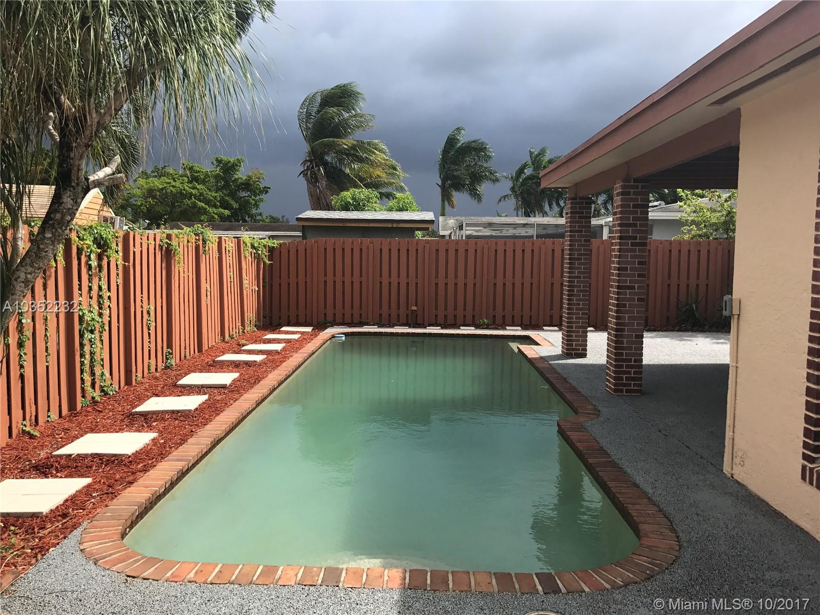 BEAUTIFUL COMPLETELY REMODELED SINGLE FAMILY HOME WITH POOL, 4 BEDROOMS AND 2 BATHROOMS. HUGE CUSTOM KITCHEN WITH WOOD CABINETS, GRANITE COUNTERTOP AND BRAND NEW TOP OF THE LINE STAINLESS STEEL APPLIANCES. OPEN CONCEPT LAYOUT WITH HUGE FAMILY ROOM. COMMON AREA TILED AND LAMINATE FLOOR BEDROOMS. NEW GORGEOUS BATHROOMS WITH PORCELAIN, GLASS SHOWER DOORS AND CROME FIXTURES. DESIGNED LANDSCAPING. HOME FRESHLY PAINTED. HUGE PATIO FENCED WITH TERRACE, BBQ AREA, POOL, OUTDOOR SHOWER AND TREES. TWO CAR GARAGE. BIG CIRCLE DRIVEWAY.