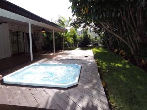 NEW Electrical Panels inside and outsideNEWER A/CCathedral Vaulted CeilingsKitchen opens to outdoor entertainment area (roofed and with outdoor fans)Kitchen with double pantryFormal Dining (Could be 3rd bedroom)Oversized great room with fireplaceCul-de-sac locationStereo system throughout homePrivate, built-in hot tub with wood deckOversized 2 car garageCabana bathSquare Footage obtained from Tax Records. Please confirm measurements.Can close quickly if you want fast commission!