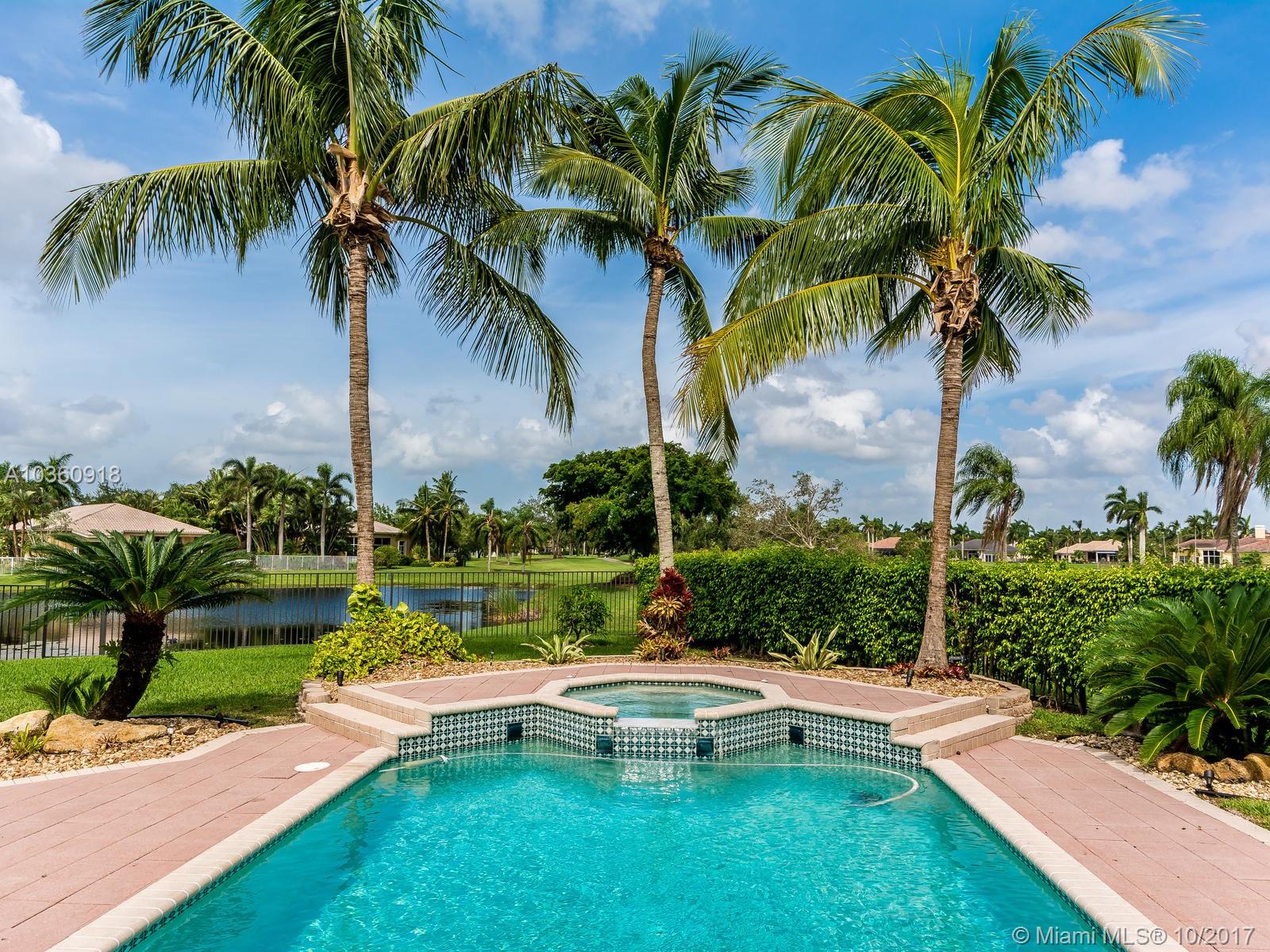 Custom golf course estate in the prestigious community of Monterey at Weston Hills Country Club, located along the 2nd hole of The Player's Course on a 17.854 sqf lot. Grand circular paver driveway welcomes you home. Gorgeous view of golf course, lake and pool. Heated pool/spa. 3 way split open floor plan. Marble floors in living areas and hardwood floors in bedrooms. 5BR, 4BA and Den. 3 car garage. Master bedroom with sitting room. Beautifully maintained. Gourmet Kitchen, separete breakfast area with bay window. Soaring ceiling, crown molding. New air condition with ecobee thermostats. New Bathrooms and laundry room. New led ilumination interior and exterior. Just painted entire house inside and outside.